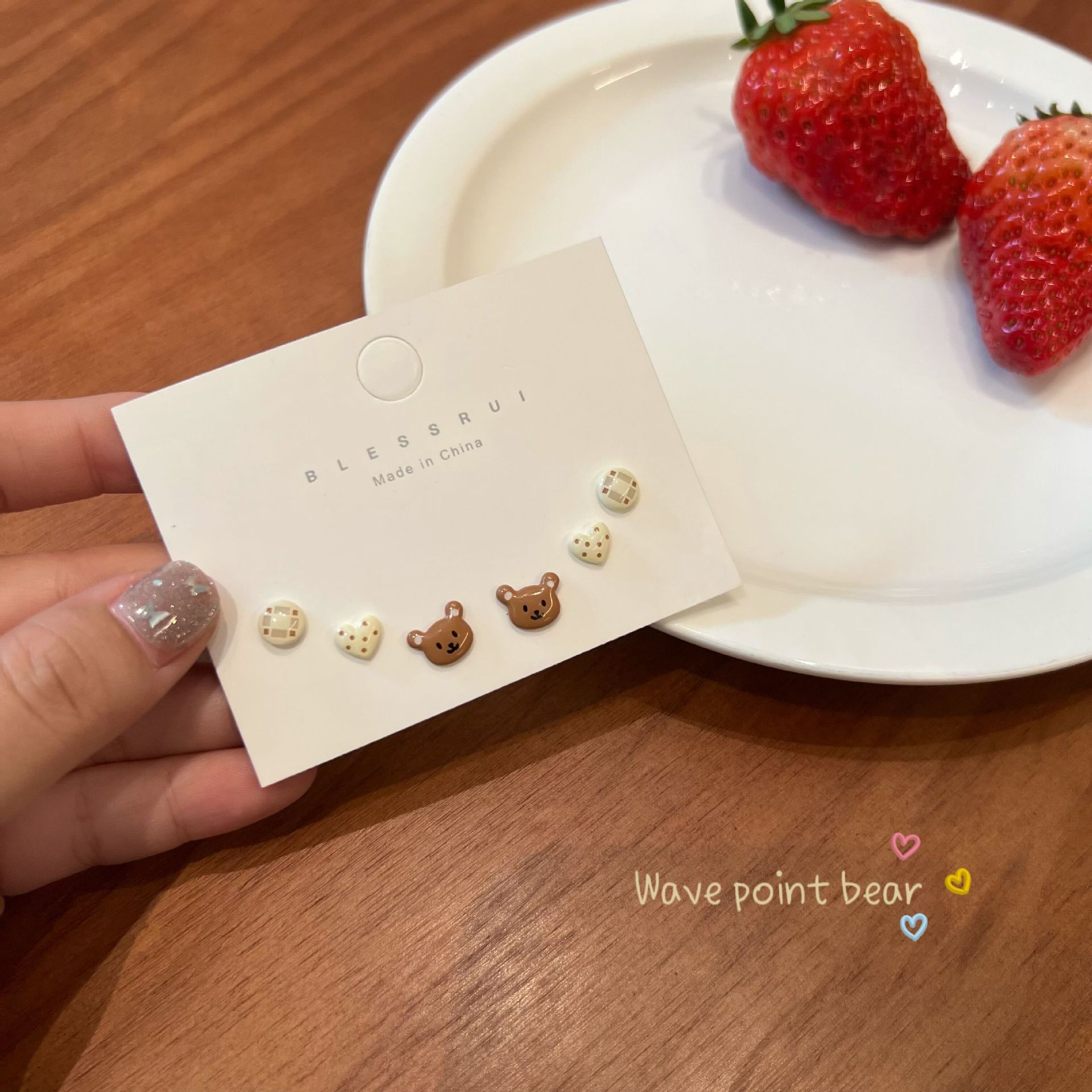 s925银针迷你小熊耳钉套装组合波点爱心设计感耳环女2022年新