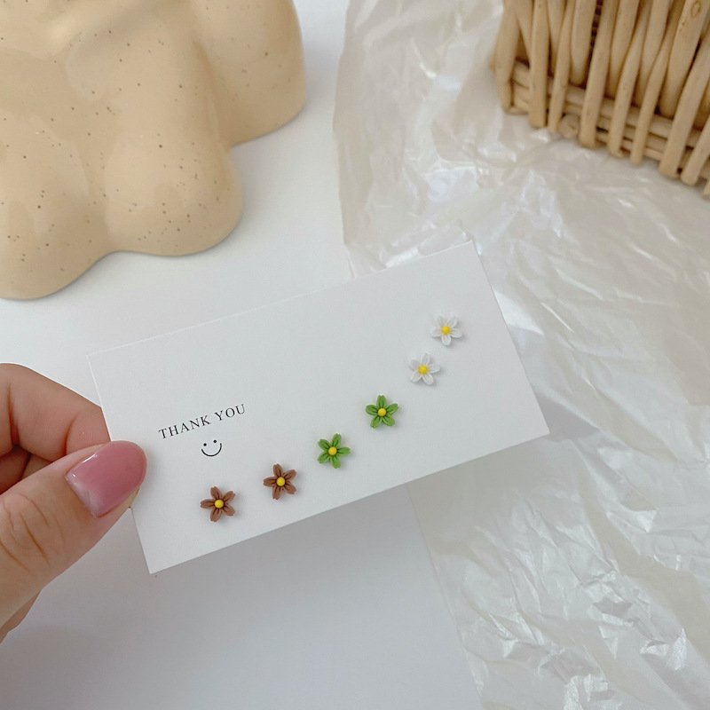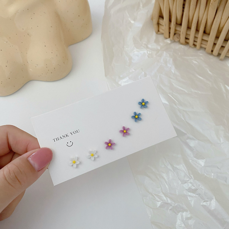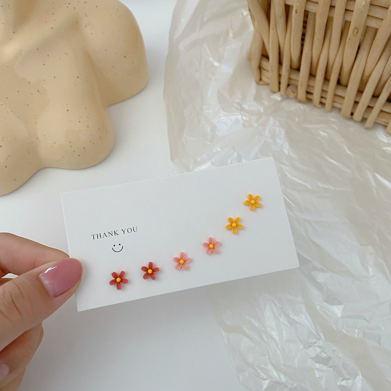 银针糖果色花朵款耳钉套装小清新可爱百搭简约小巧少女小花耳饰