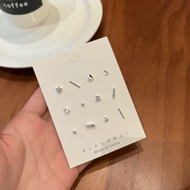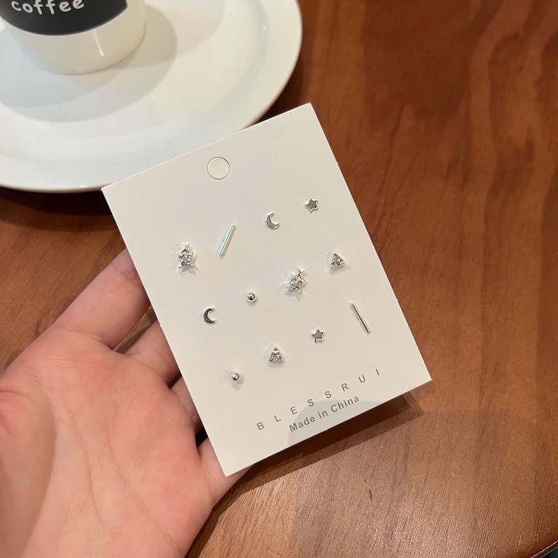 精致s925银针简约耳钉套装百搭女冷淡风气质时尚高级感养耳洞耳饰