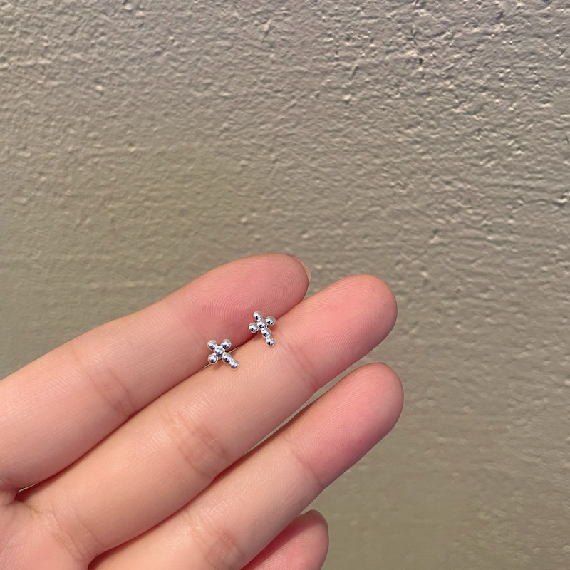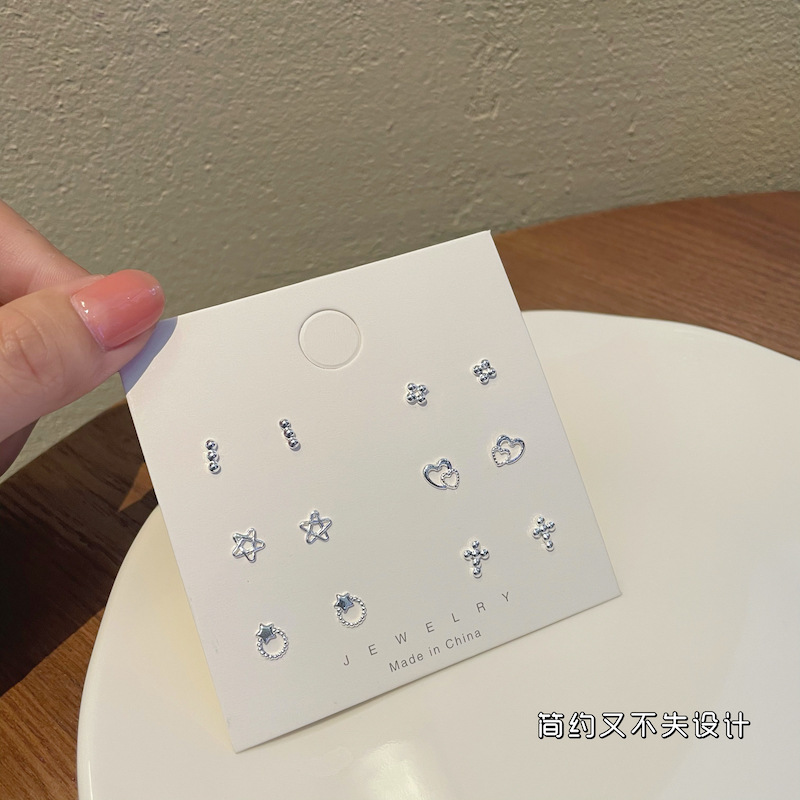 新款s925银针小众设计感几何耳钉套装十字架爱心简约女小巧耳饰品
