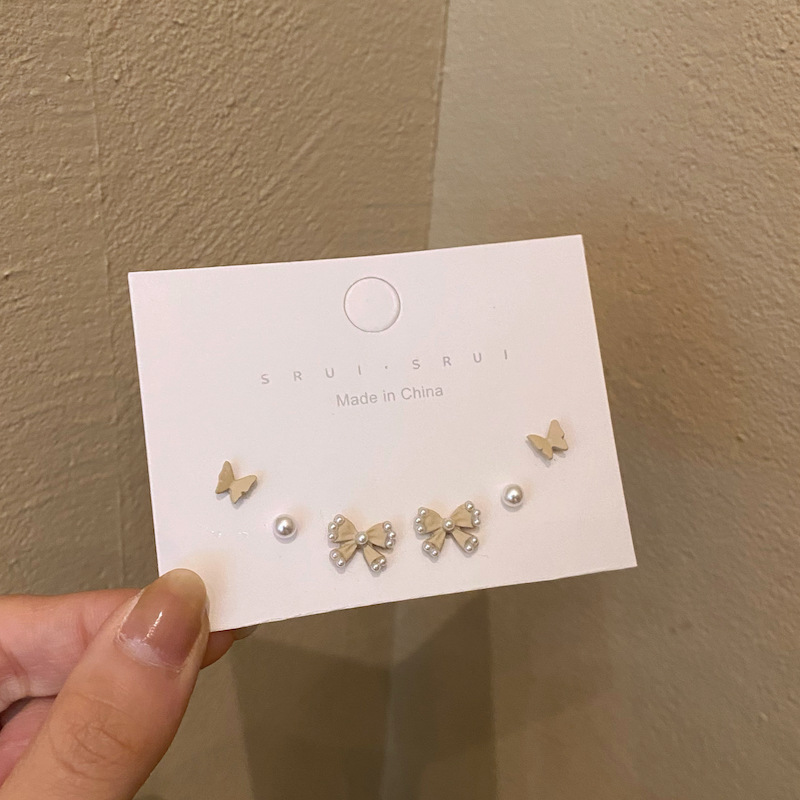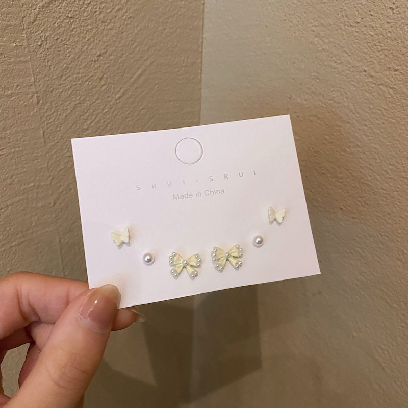 韩国s925银针气质珍珠蝴蝶结耳钉套装温柔蝴蝶少女高级感耳饰耳环