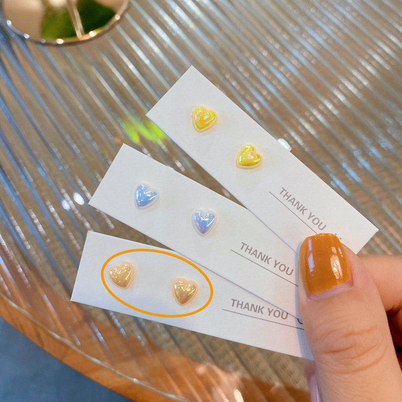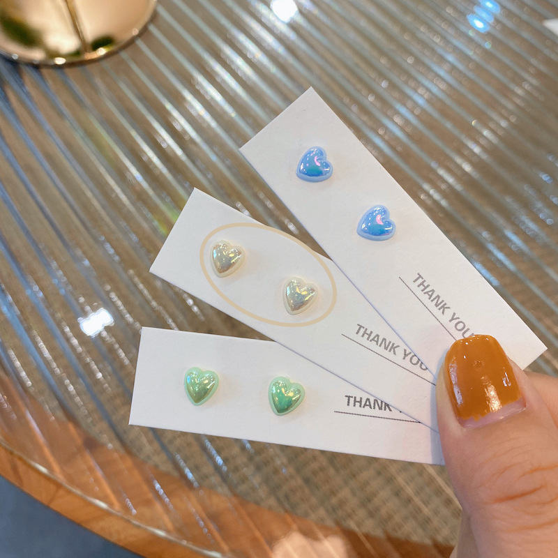 夏天超仙彩色爱心耳钉套装组合女s925纯银针少女心ins风耳环耳饰