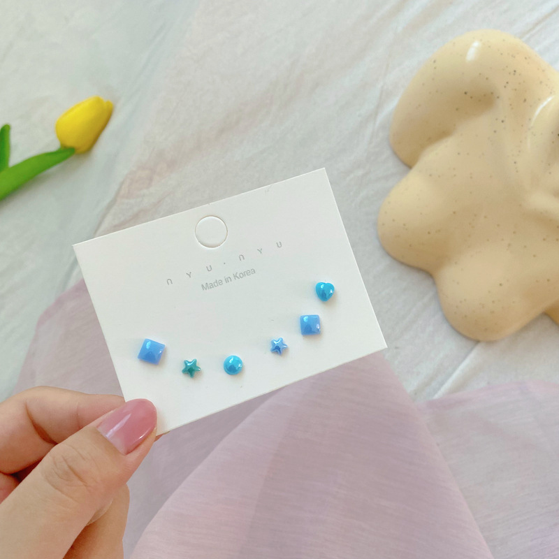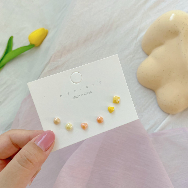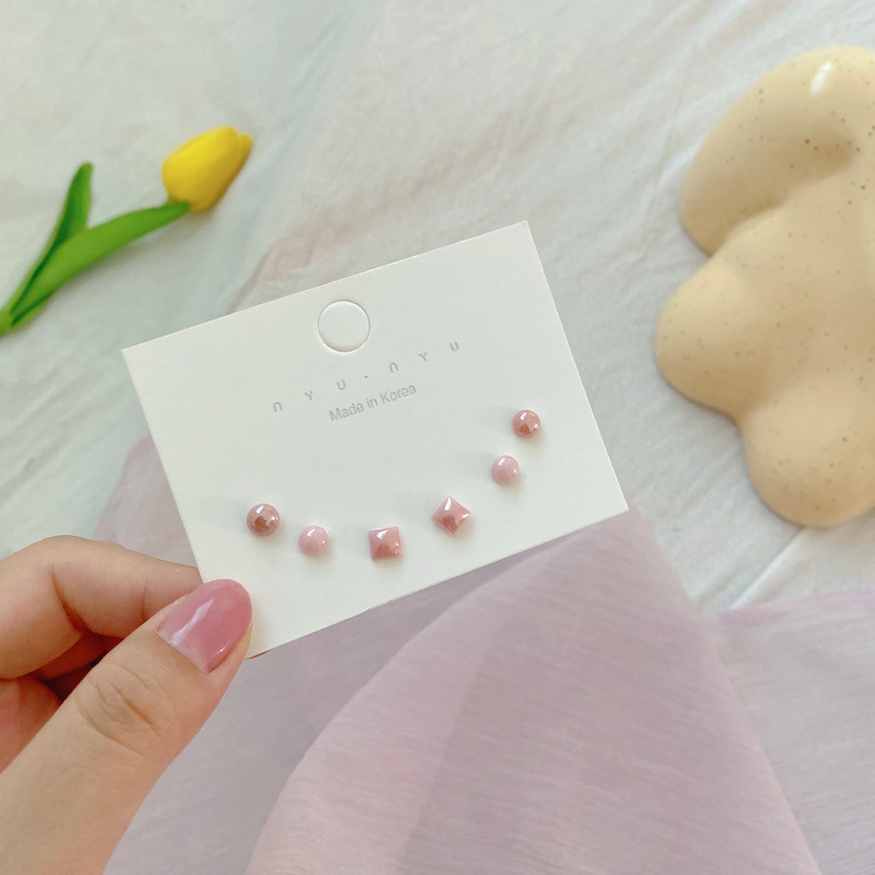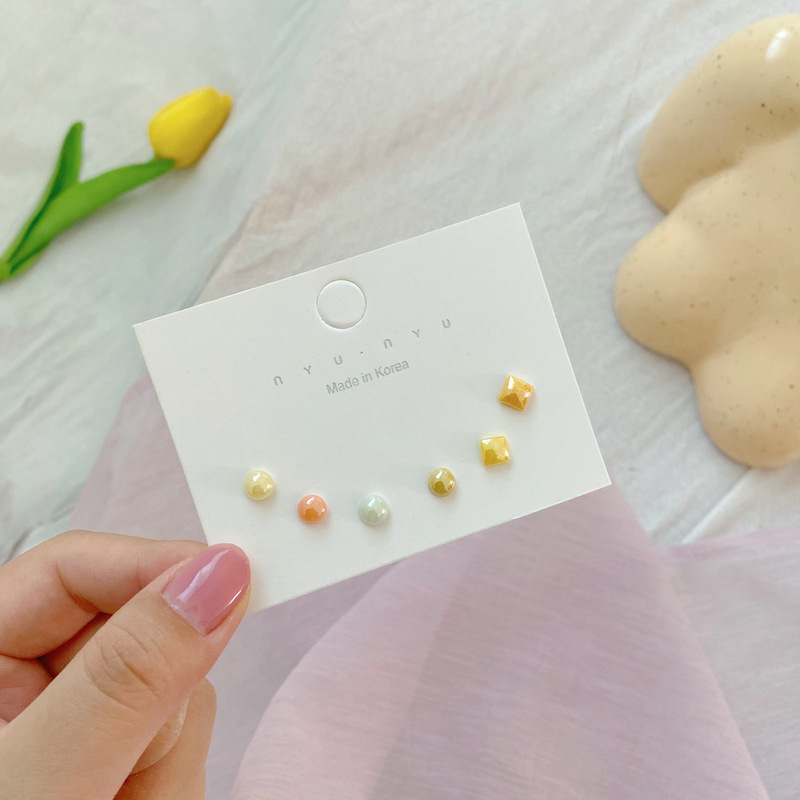 s925银针陶瓷几何耳钉套装莫兰迪色系小众设计ins风糖果色耳环女