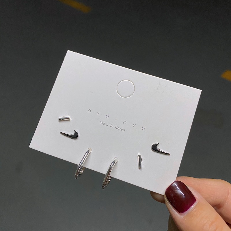 925纯银酷帅运动耳钉套装对勾几何豆豆简约小巧冷淡风迷你耳骨钉