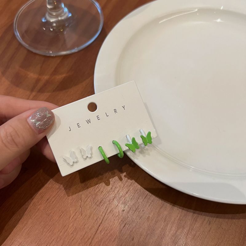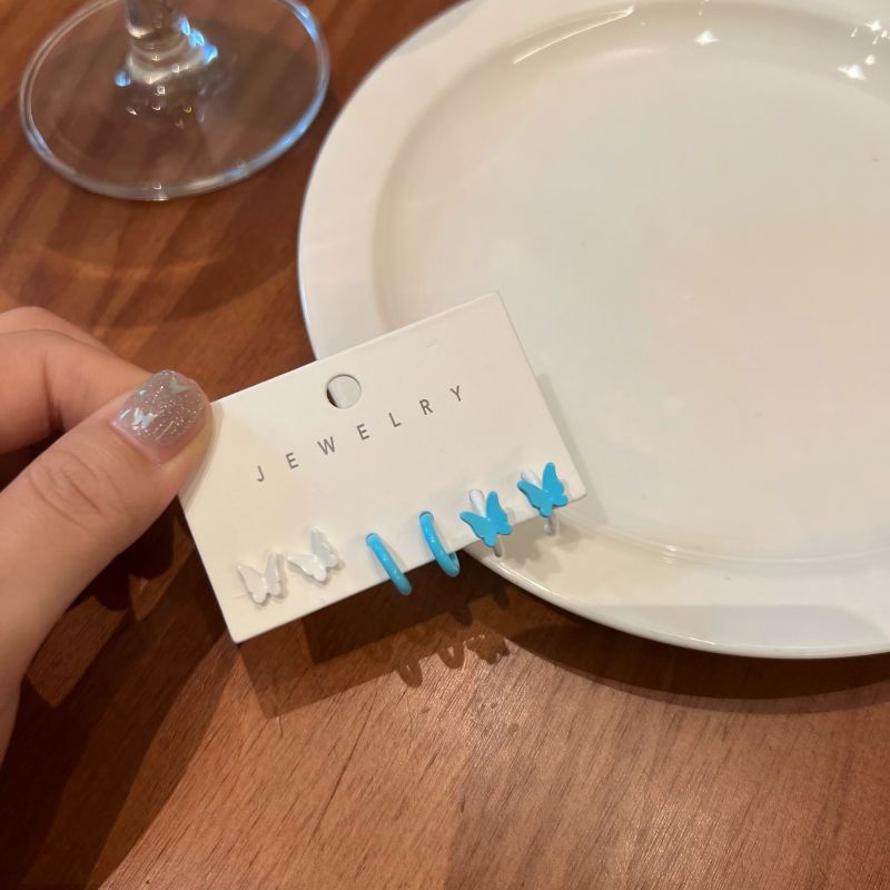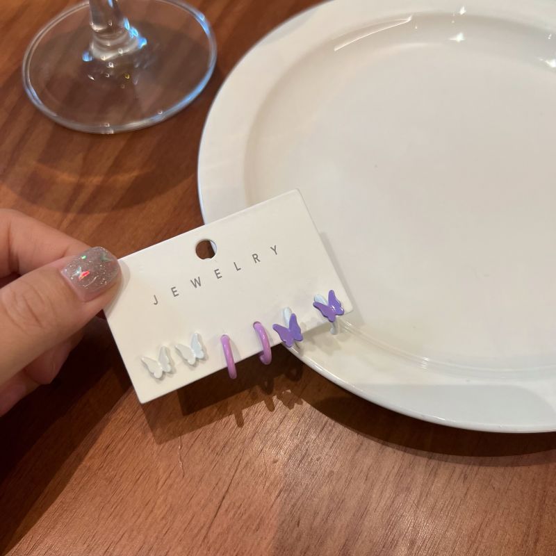 小众彩色耳环s925银针蝴蝶耳钉三件套简约气质小清新女耳饰批发