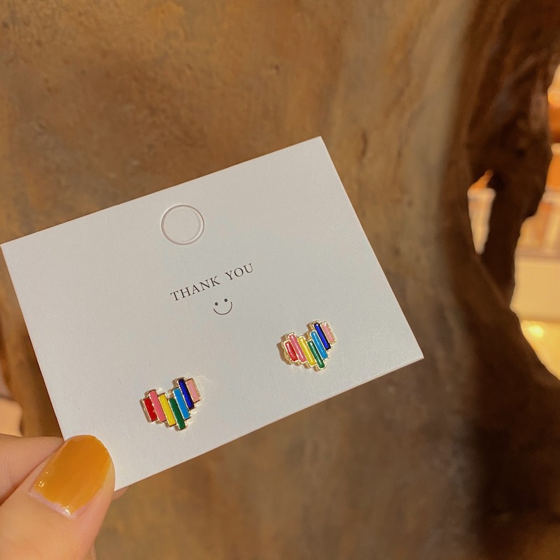 韩国可爱彩虹爱心s925纯银针爱心耳钉女滴油简约小巧气质网红耳饰