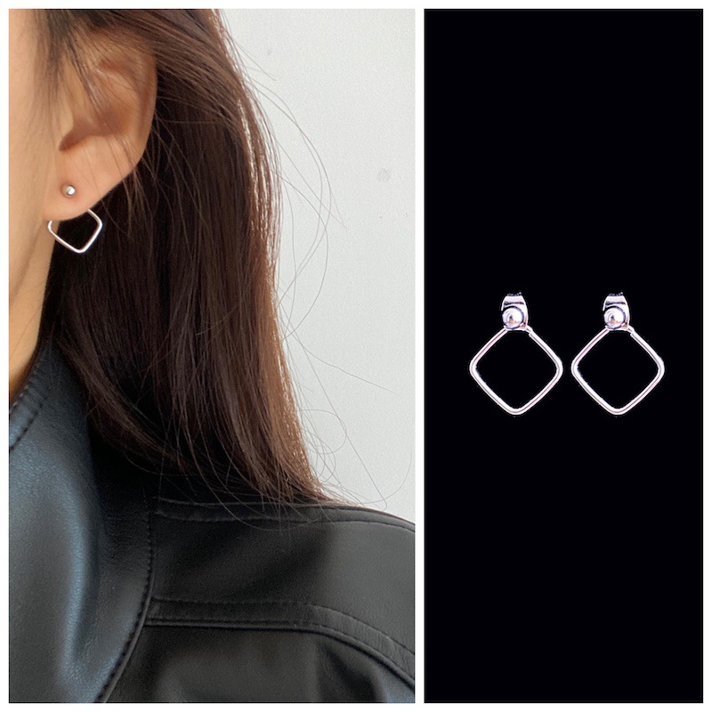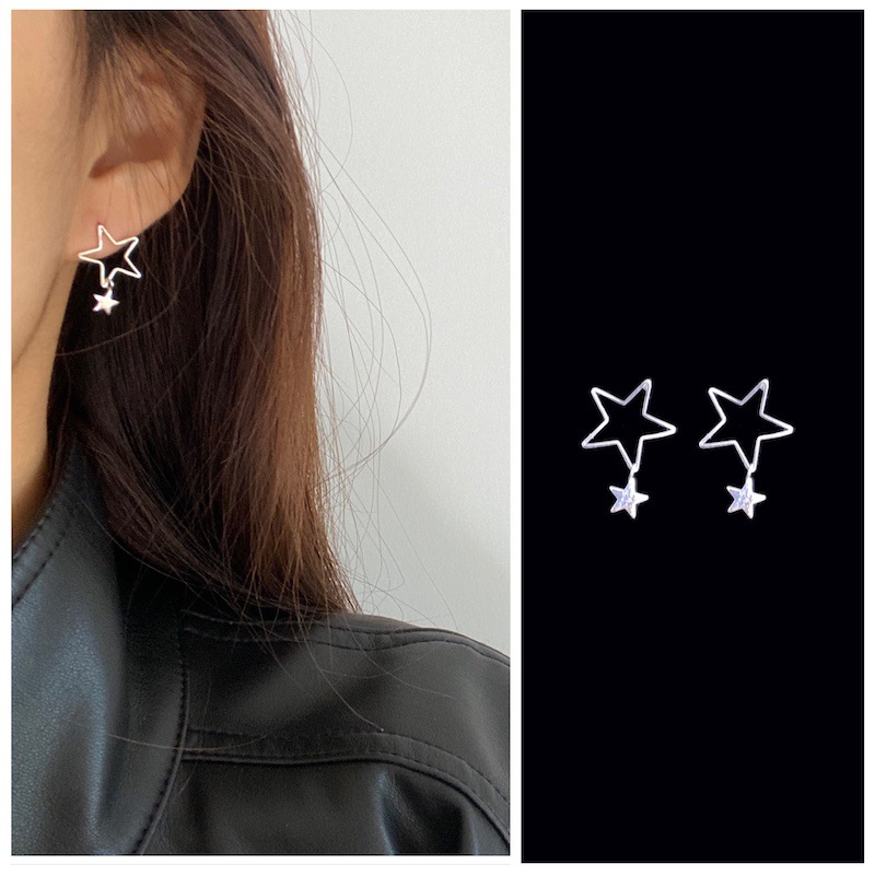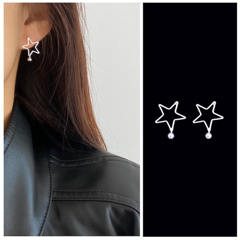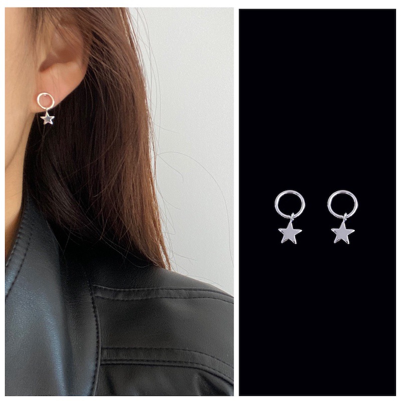s925纯银几何镂空五角星耳钉女简约冷淡风小巧养耳洞圆形耳环批发