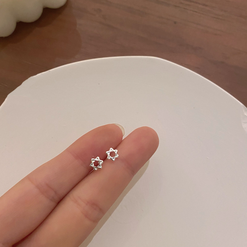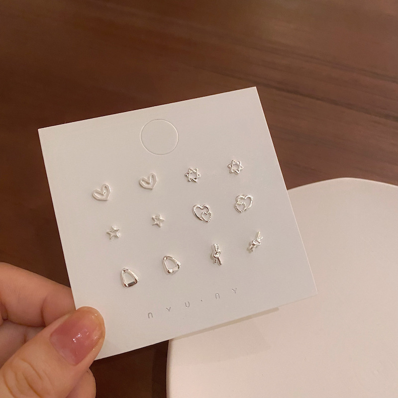 新款银针几何设计感爱心五角星光面耳钉套装小巧精致小众设计耳饰