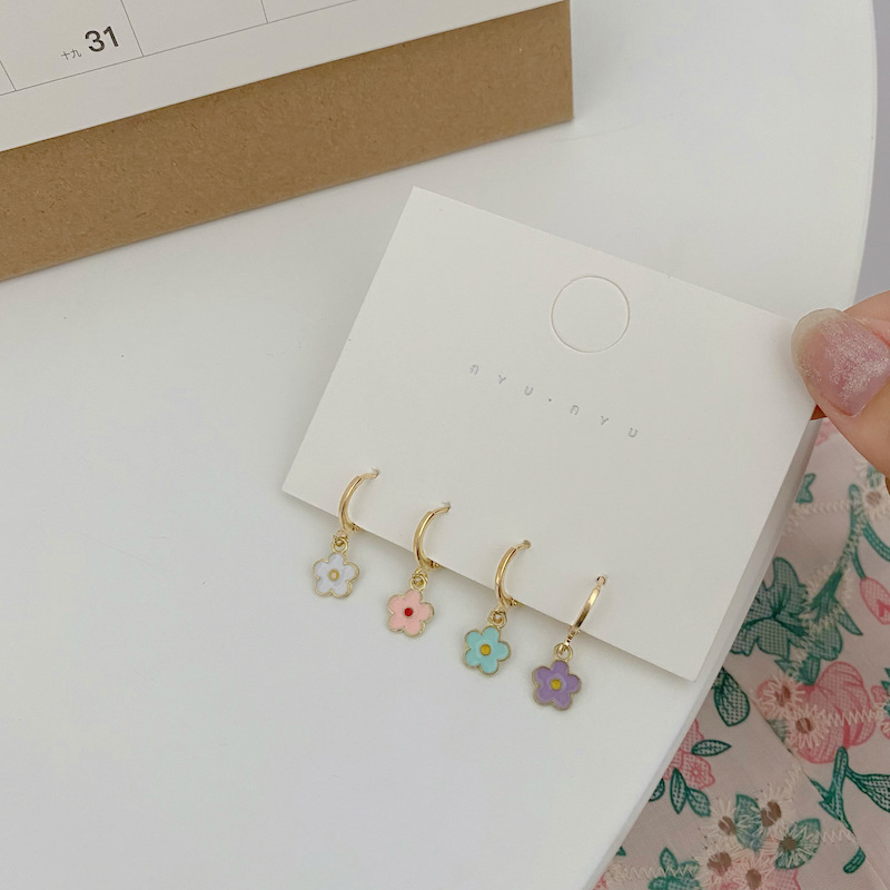 新款韩国可爱彩色花朵耳扣套装女小众设计简约小巧精致少女心耳钉