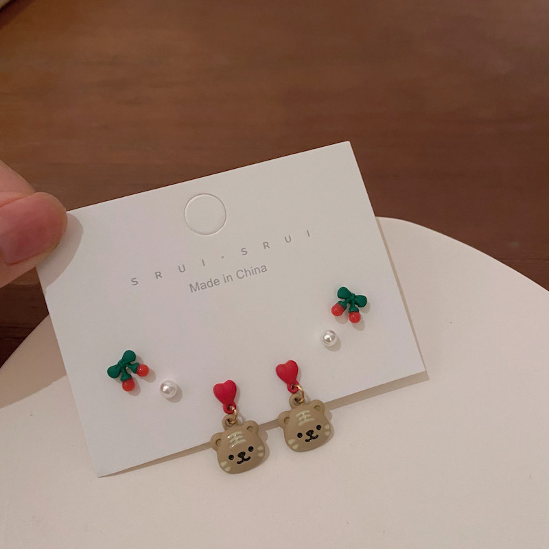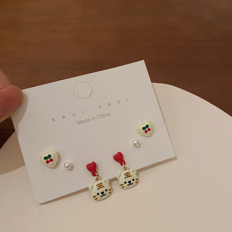 新款s925银针本命年虎年耳钉套装女小众设计感可爱生肖老虎耳环