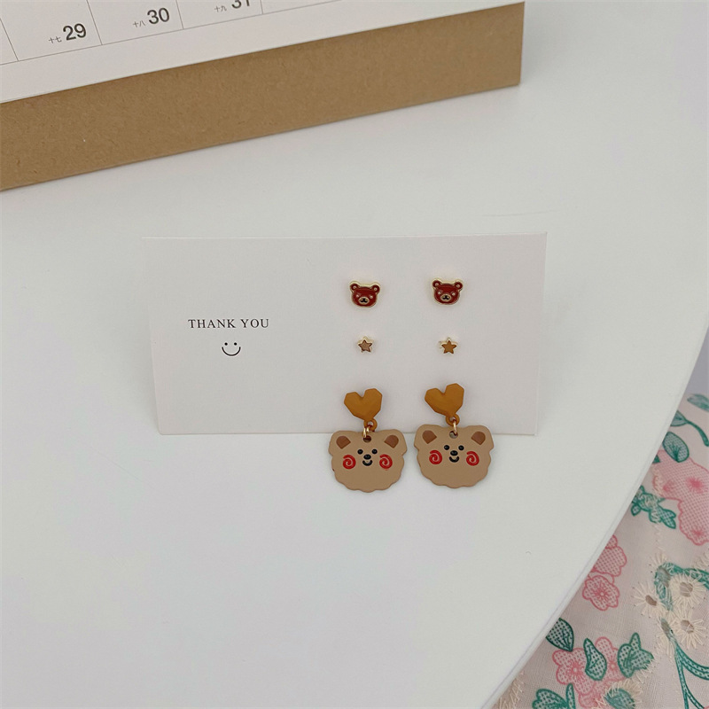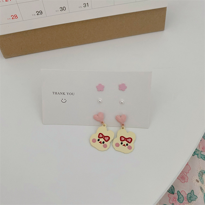 s925纯银针可爱小熊耳环五角星爱心耳钉女日系耳坠卡通萌兔子耳饰
