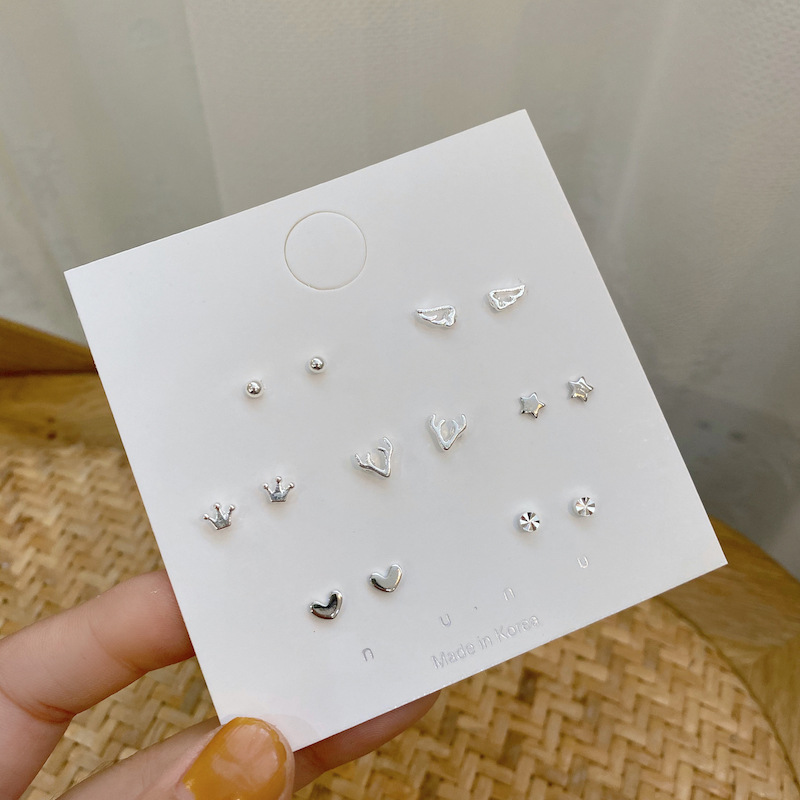 s925银针简约女小巧耳钉套装组合迷你防过敏耳骨钉养耳洞睡觉免摘