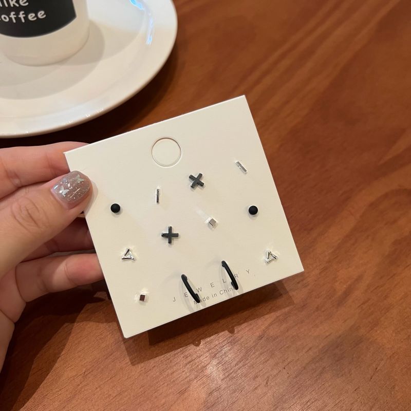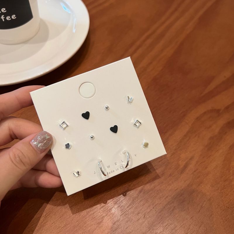 s925银针耳钉简约套装爱心小巧男女时尚几何百搭耳环爆款耳饰批发