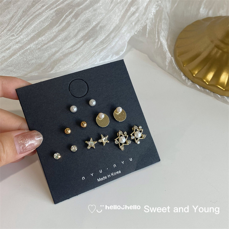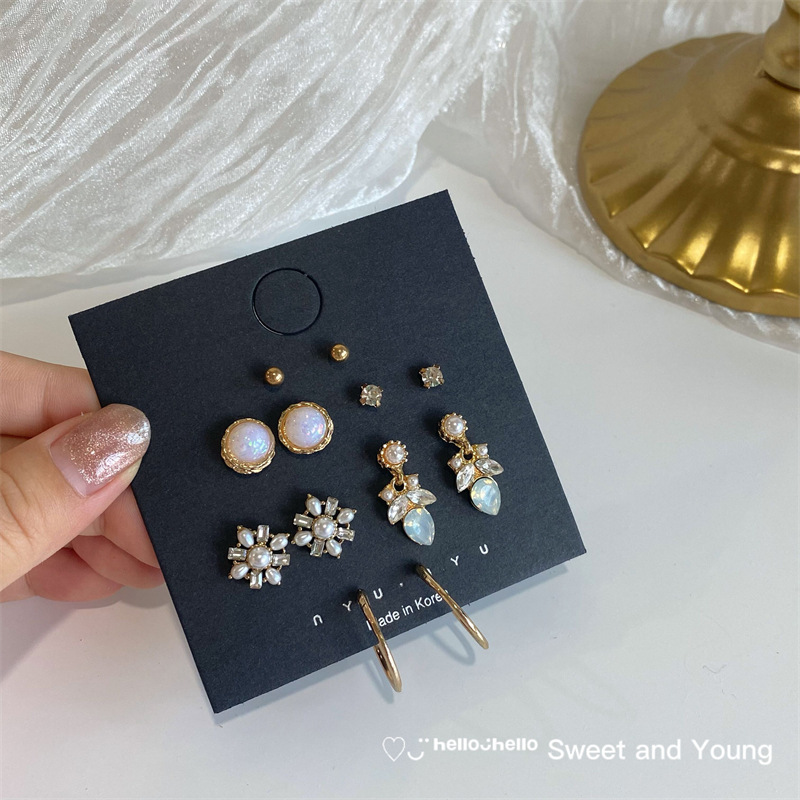 日韩复古耳钉套装六对装气质巴洛克高级感c型时尚女简约珍珠耳饰