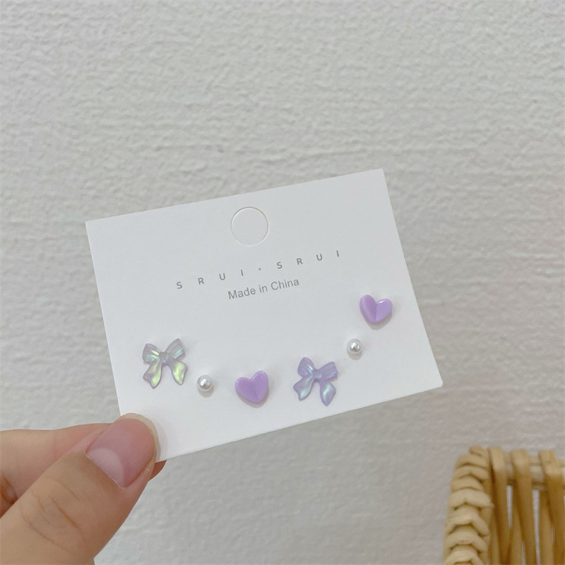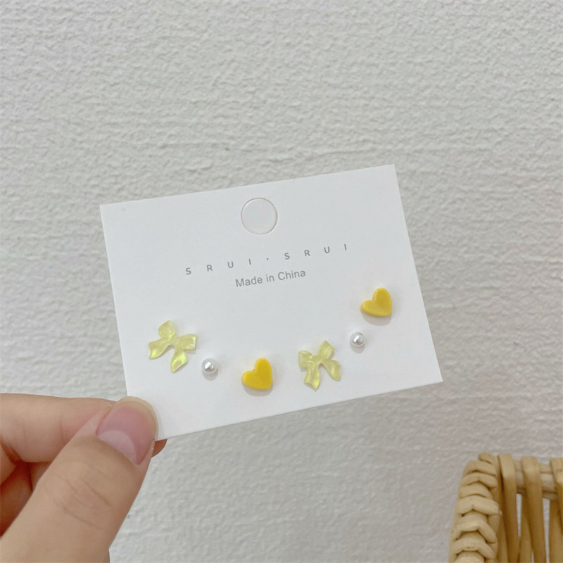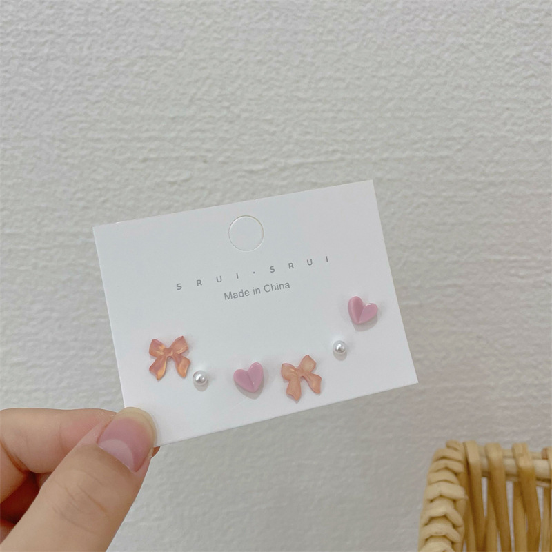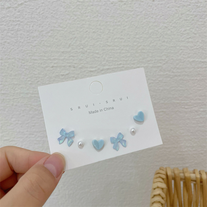 s925纯银针极光蝴蝶结陶瓷爱心耳钉套装珍珠彩色简约女田园风耳环