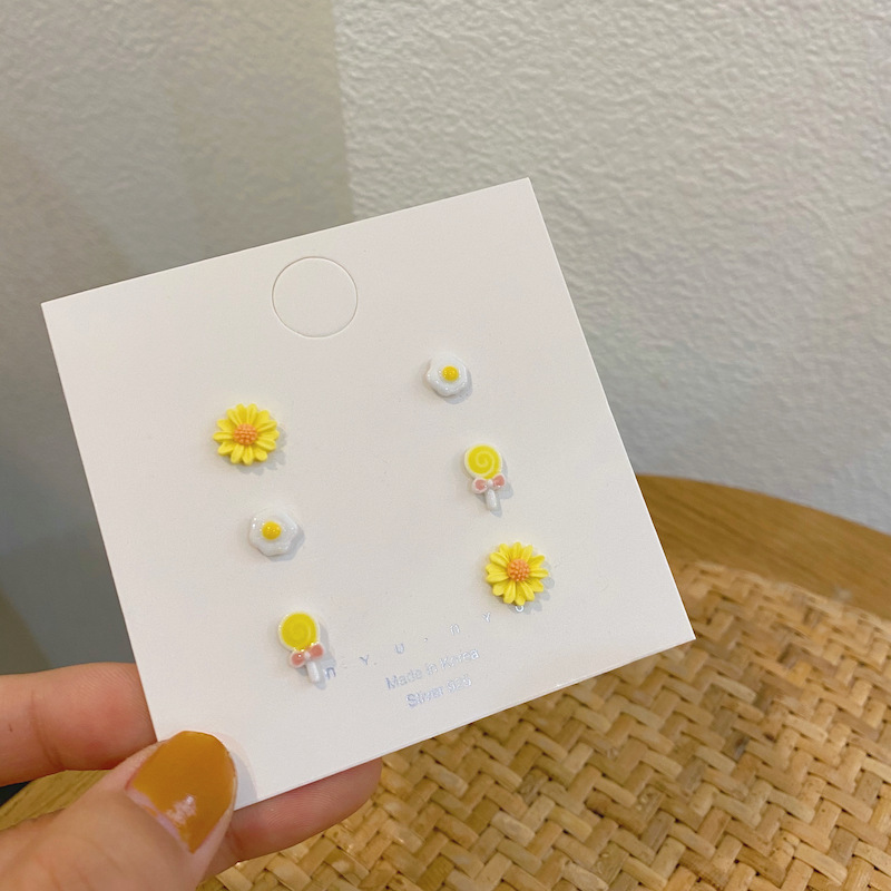防过敏s925银陶瓷耳钉套装糖果色甜美少女心学生耳环精致小巧耳饰