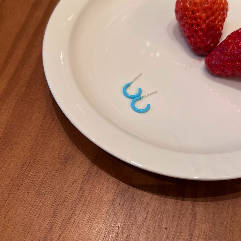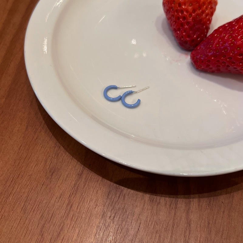s925银针马卡龙彩色c型耳圈少女心简约ins风圆圈耳钉夏天纯色耳环