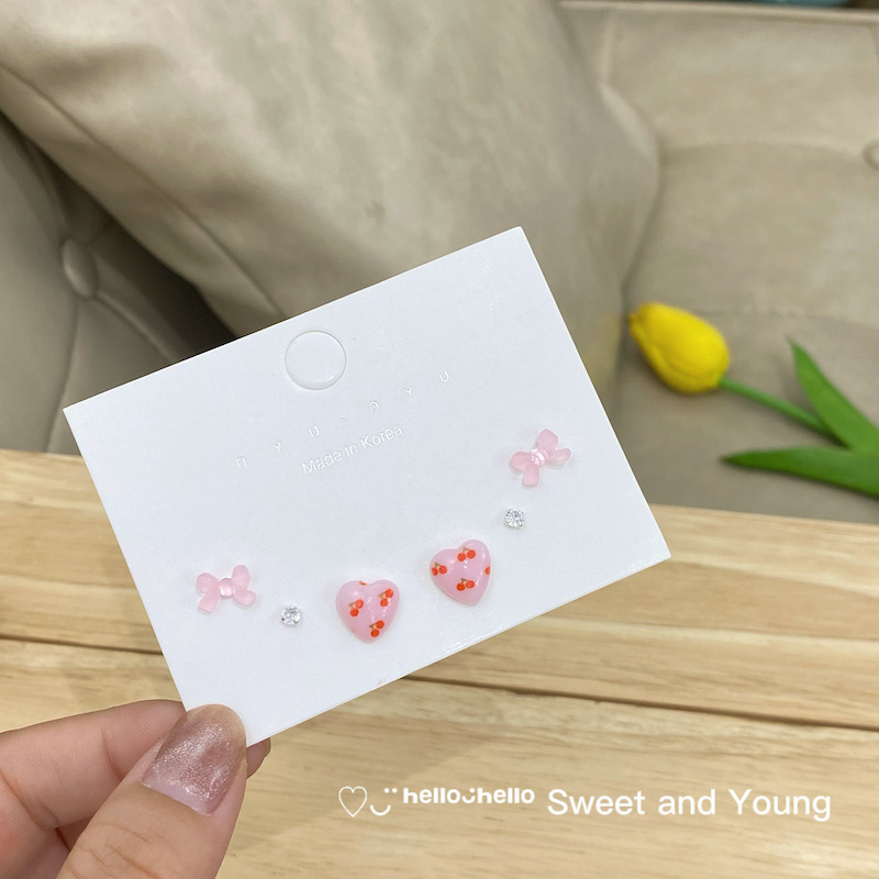 甜美蝴蝶结爱心耳钉套装s925银针少女心樱桃小清新可爱ins风耳环