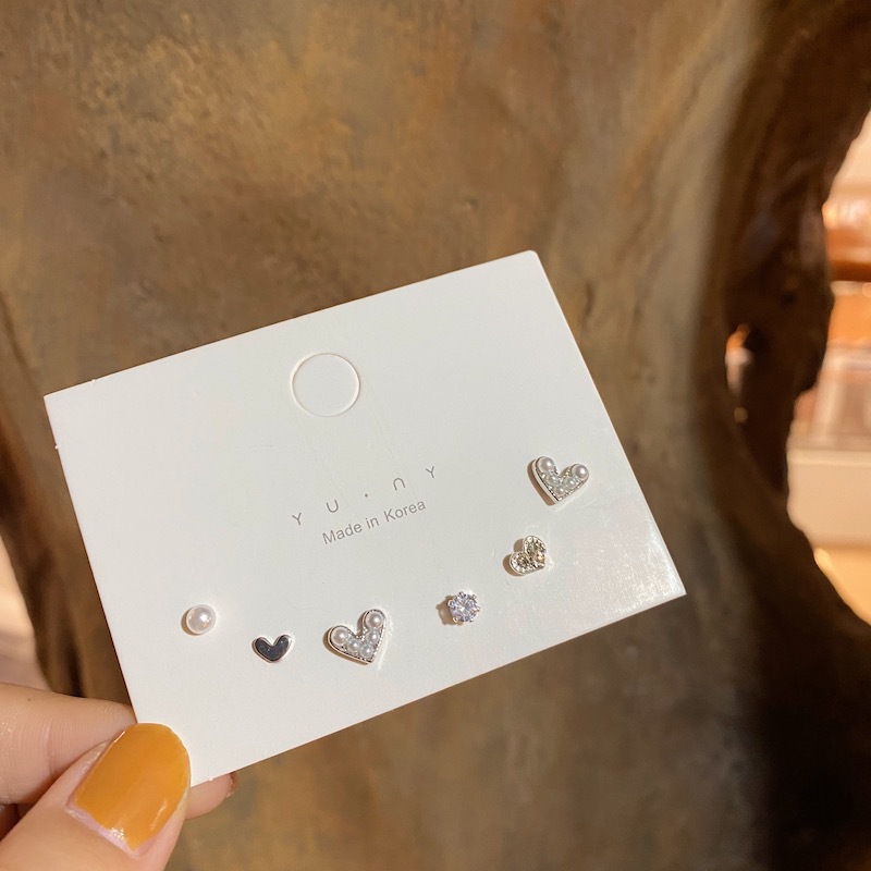 新款珍珠海星爱心耳钉三件套装组合甜美精致s925银针少女小巧耳饰
