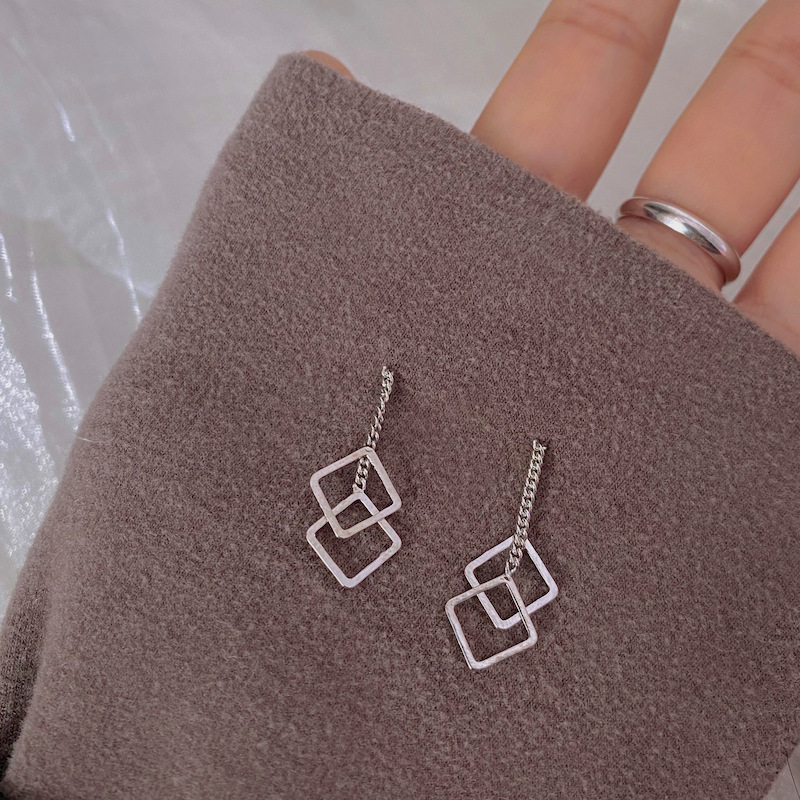 s925银针ins简约几何镂空方块耳环女韩国个性链条简约冷淡风耳饰