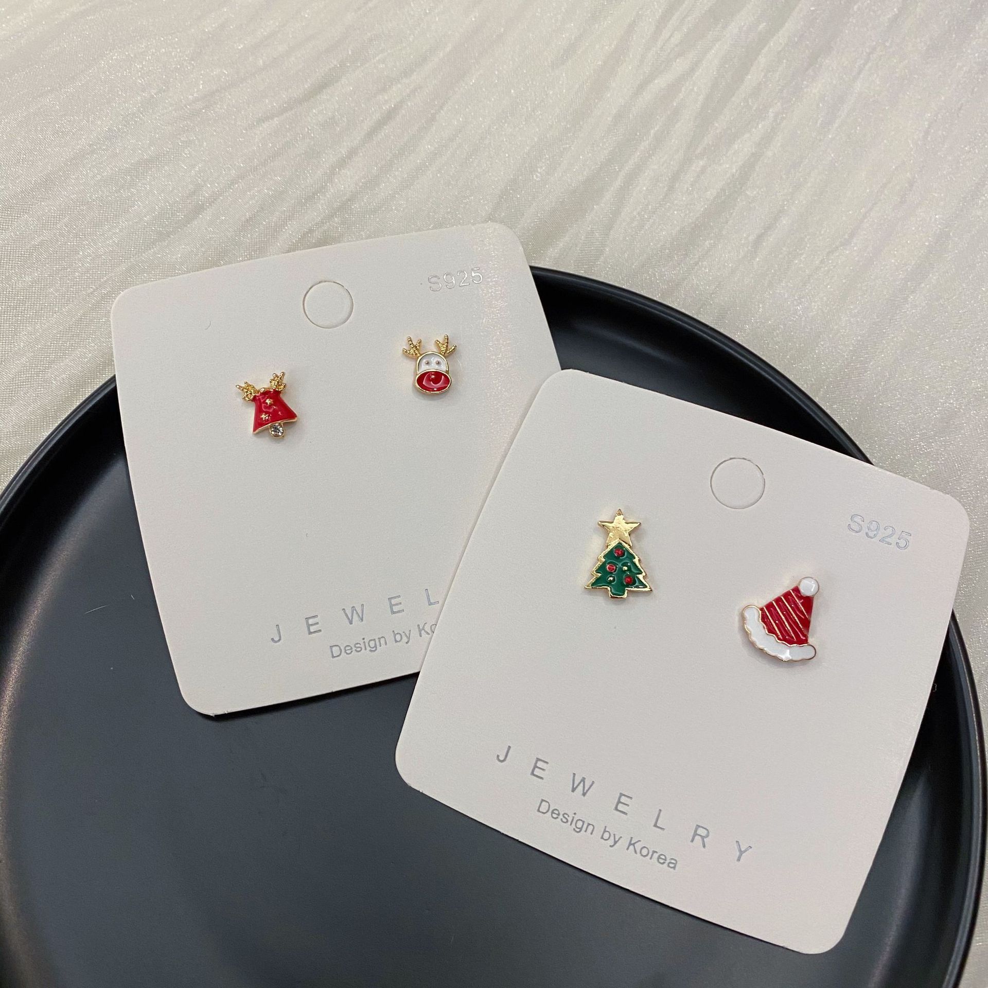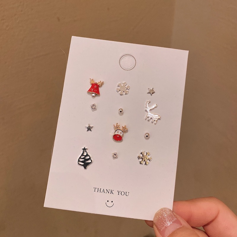 纯银s925圣诞节系列耳钉套装驯鹿简约女小巧适合冬天的圣诞款耳环