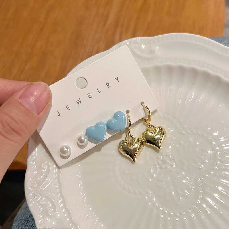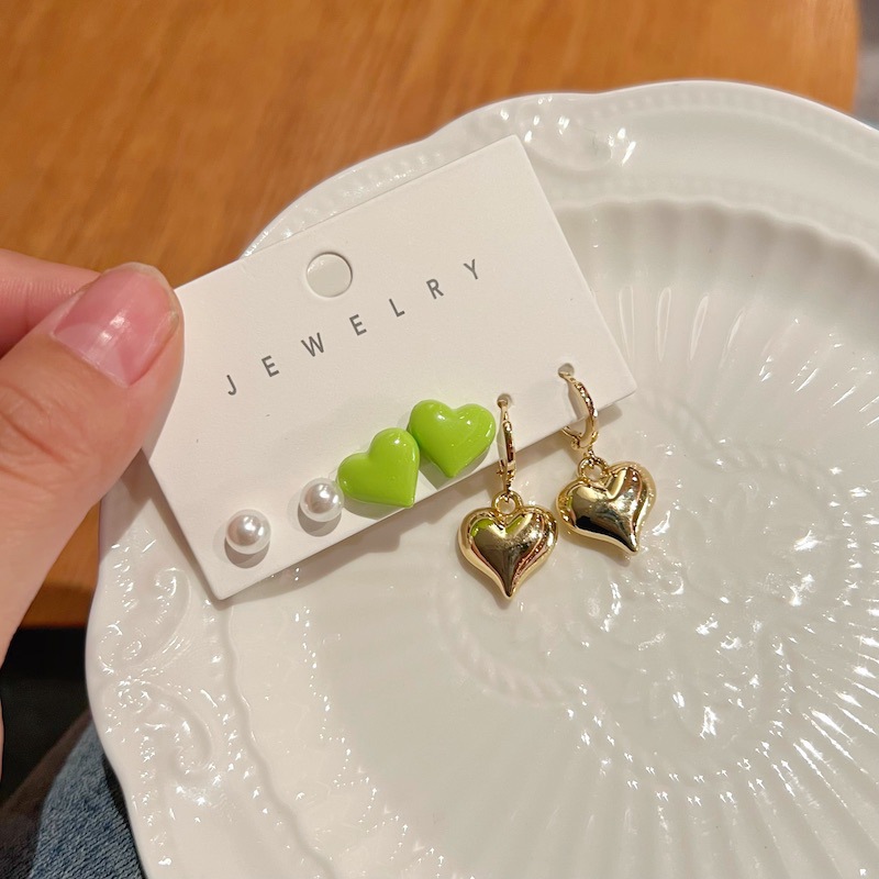 s925银针彩色简约立体爱心耳钉套装小清新可爱甜美ins风金属耳扣
