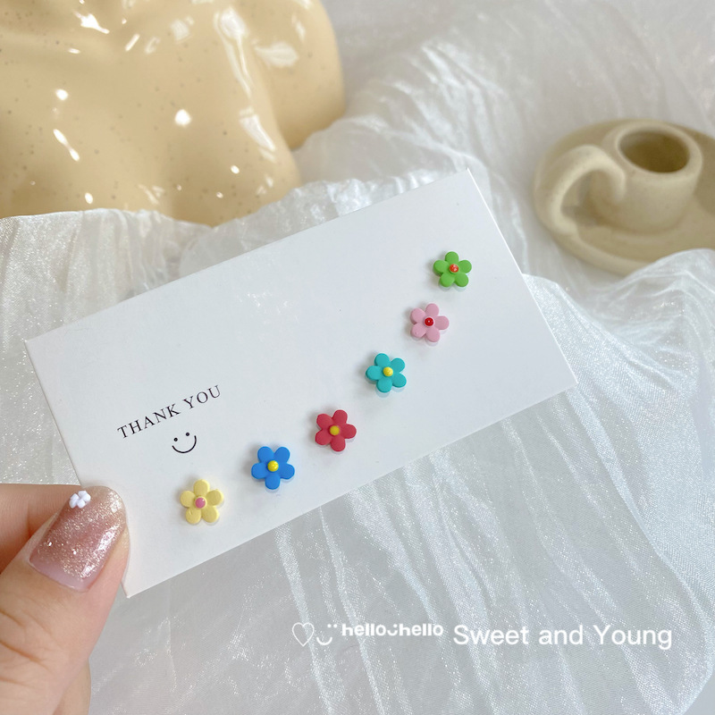 甜美s925银针彩色花朵耳钉套装夏天可爱少女ins气质个性简约耳饰