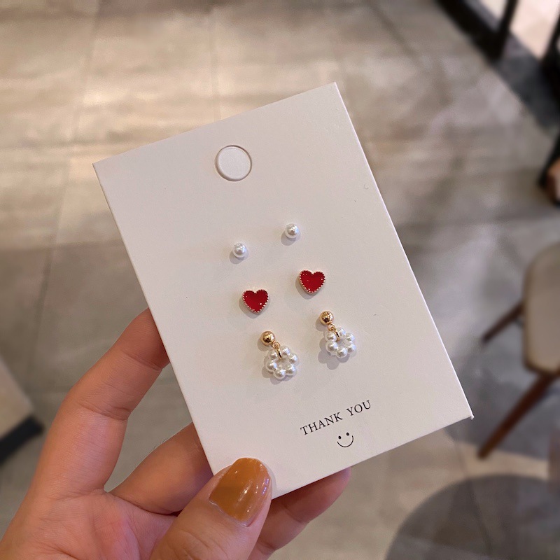 韩国法式复古气质925纯银珍珠耳环套装红爱心耳钉ins巴洛克耳饰女