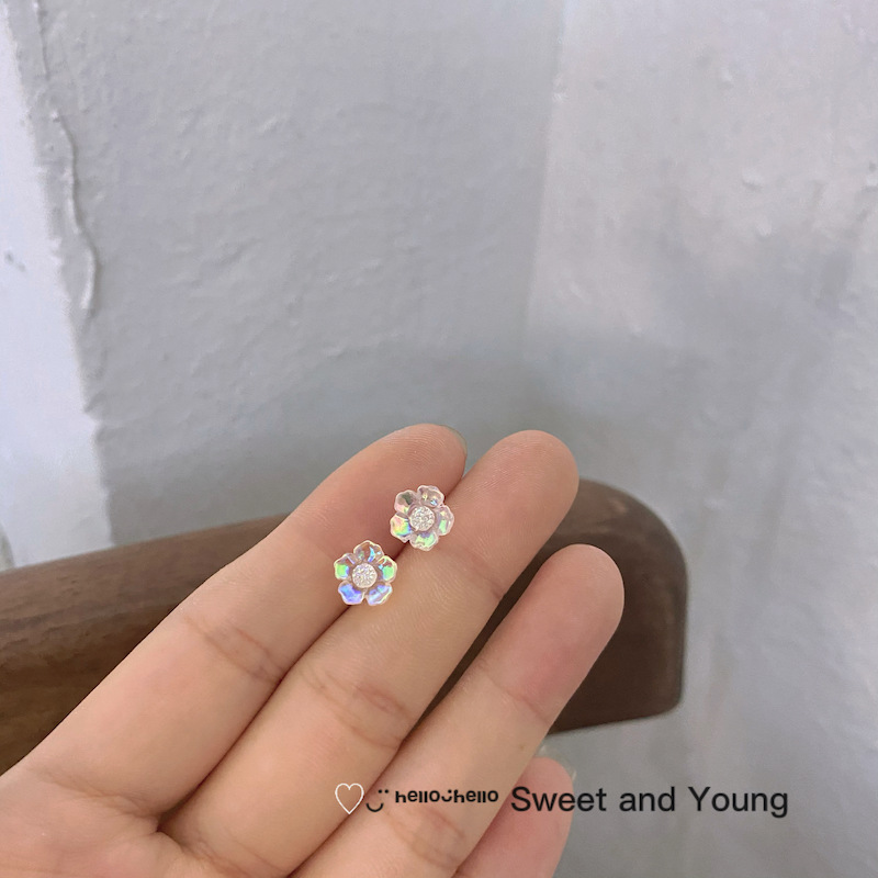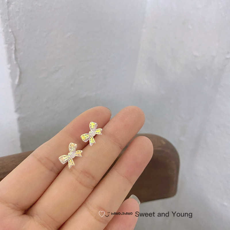 韩式甜美s925纯银蝴蝶结花朵耳钉女少女心小清新ins气质夏天耳环