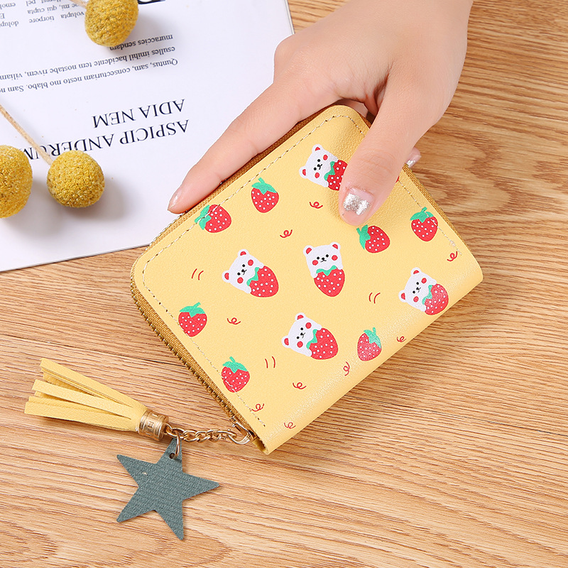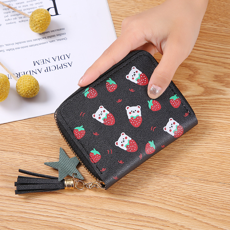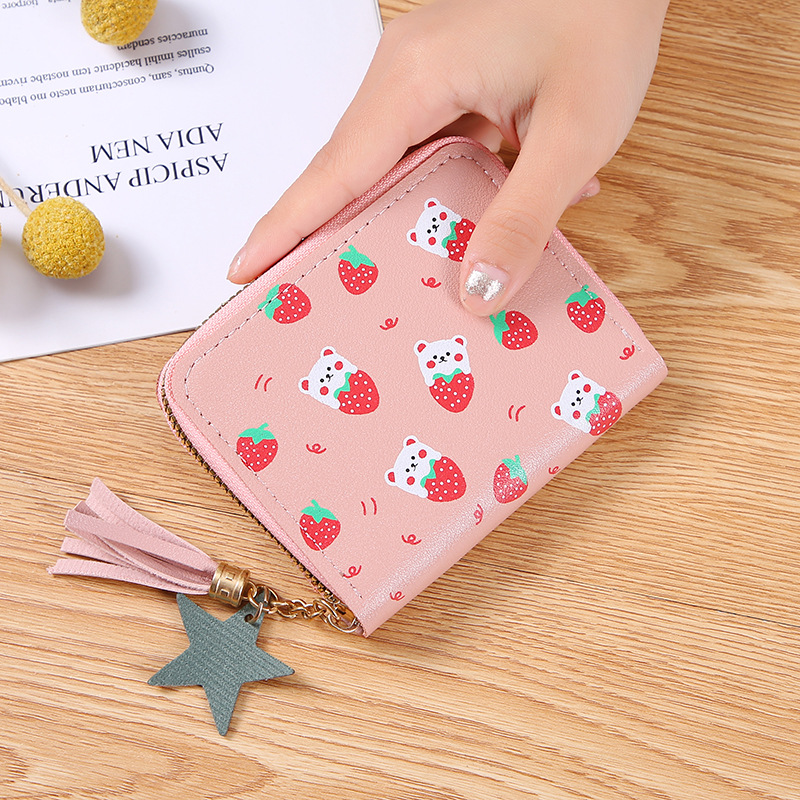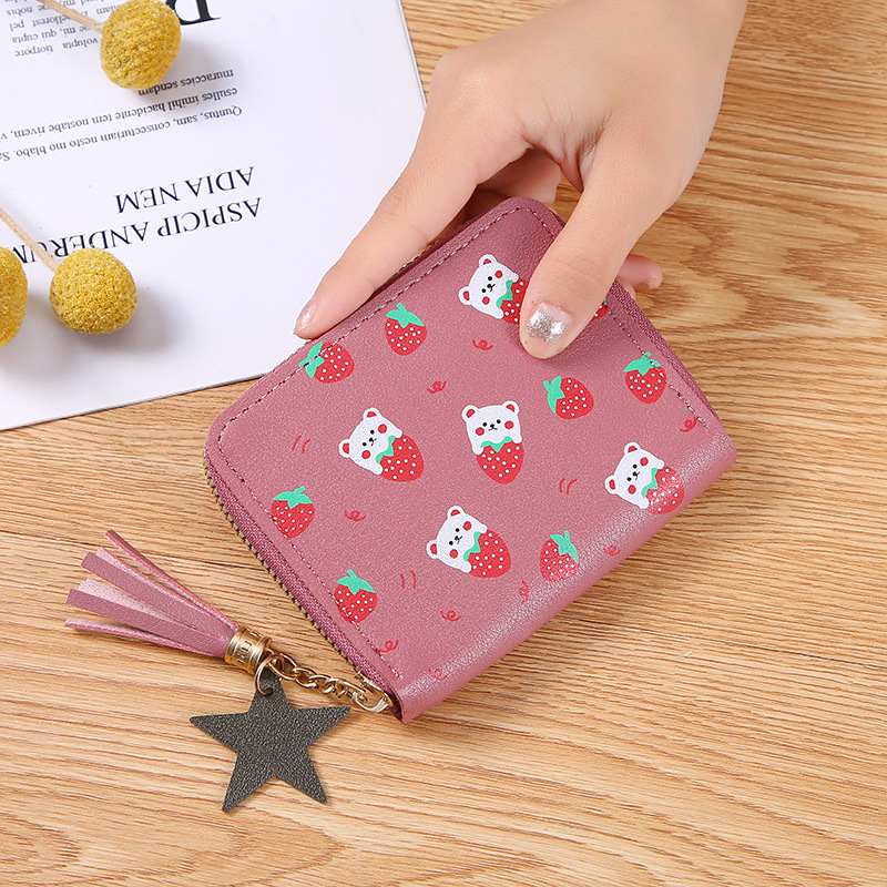 zipper bag草莓零钱包女士短款流苏拉链小钱包卡包迷你女学生钱夹