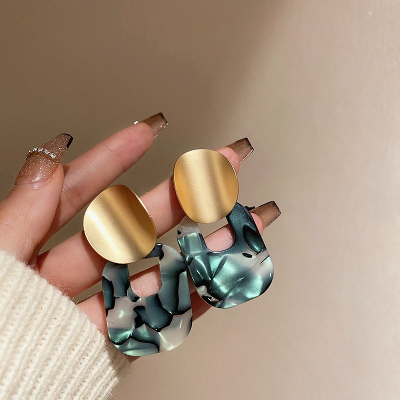 饰品亚克力几何拼色耳环高级感小众个性时尚耳钉欧美风耳批发