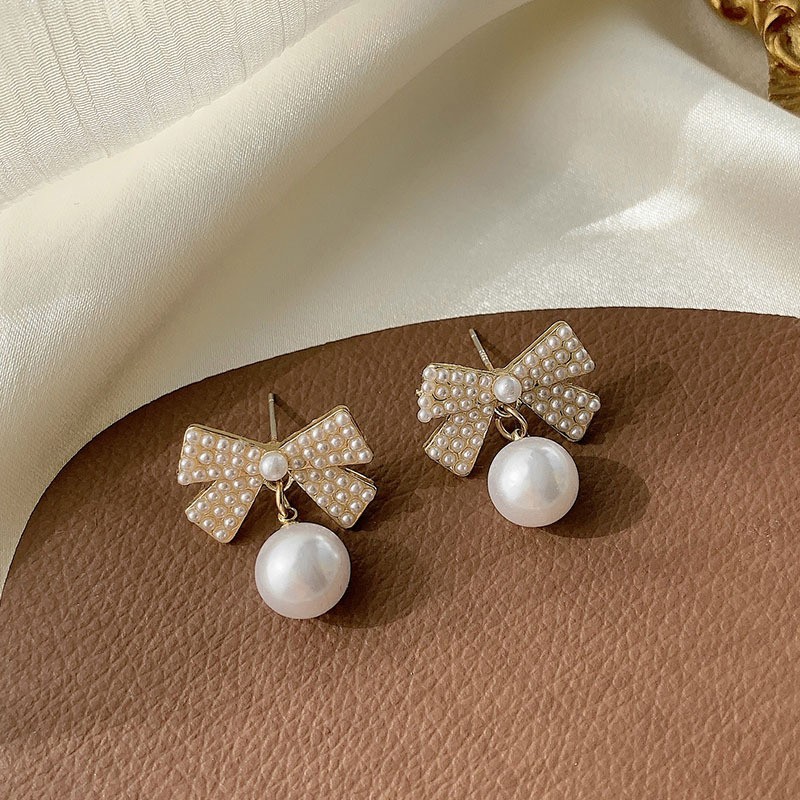 饰品银针珍珠花朵蝴蝶结耳环气质森系耳钉简约自然风耳饰一件代发