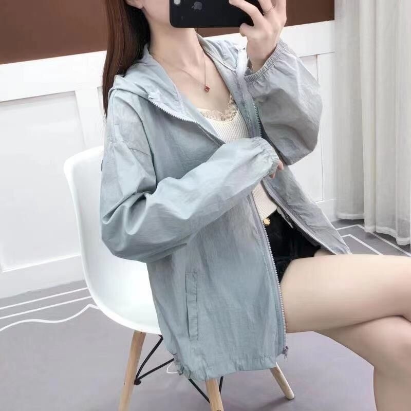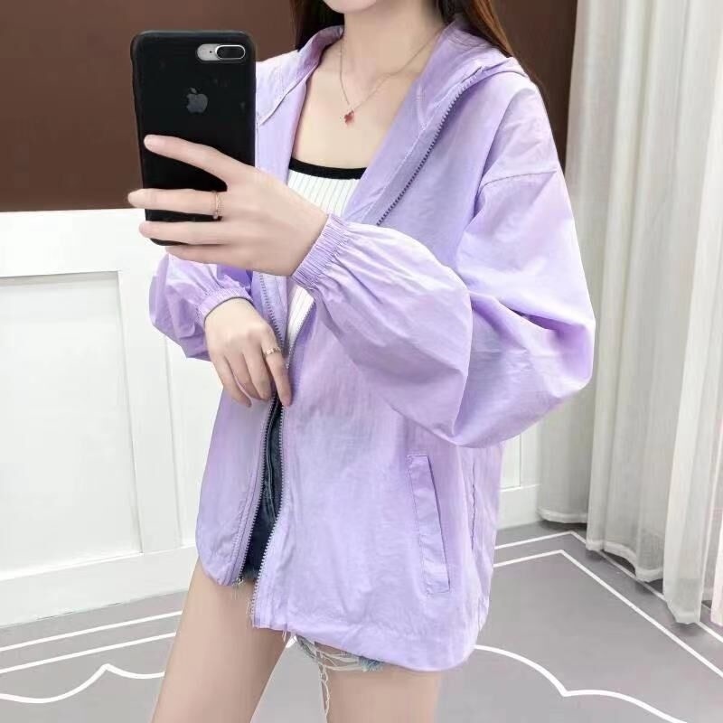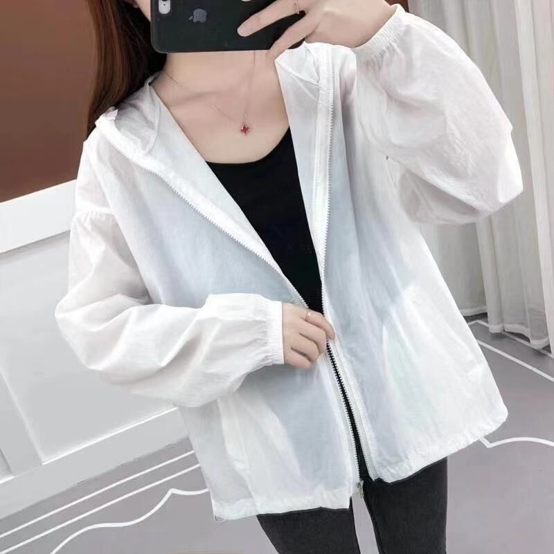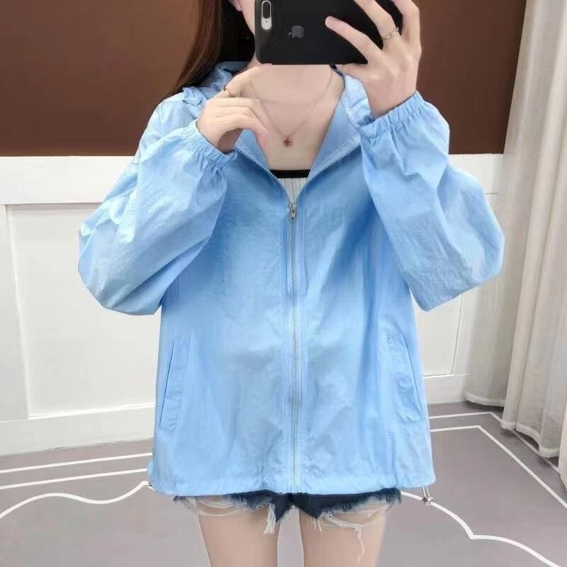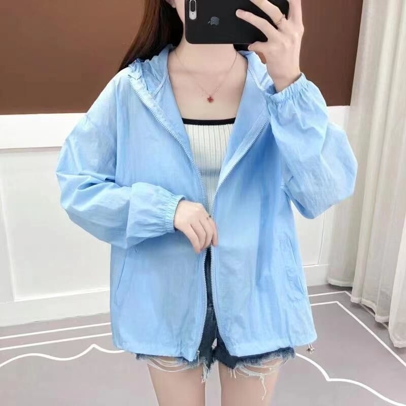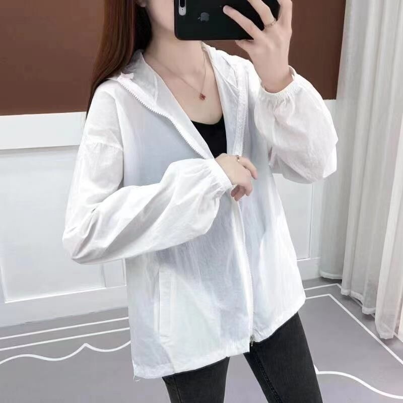 防晒衣女2022年宽松防紫外线透气连帽披肩衫新防晒服短款冰丝透气