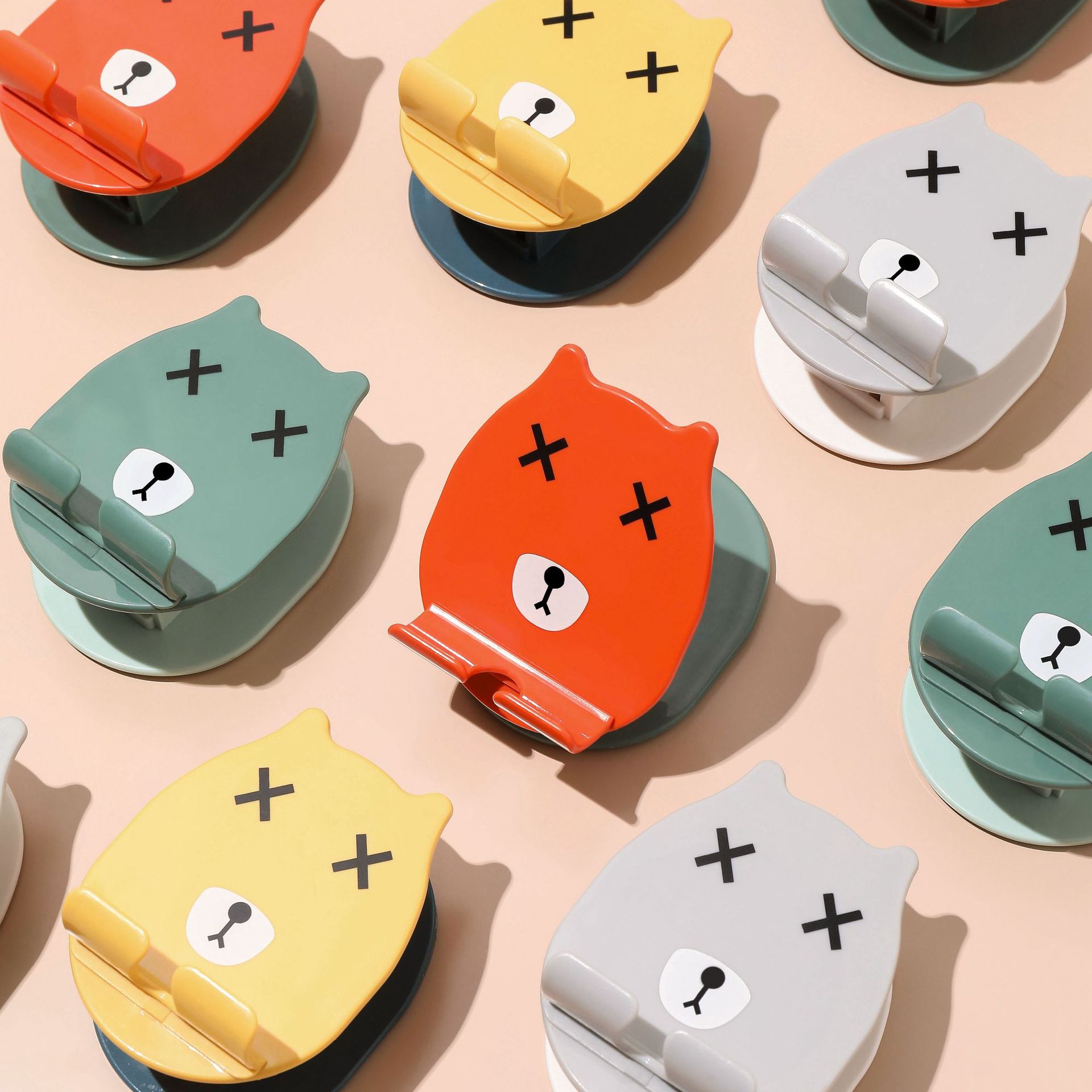 卡通小熊牙刷架多功能可折叠手机支架盒装免打孔胶粘贴挂钩