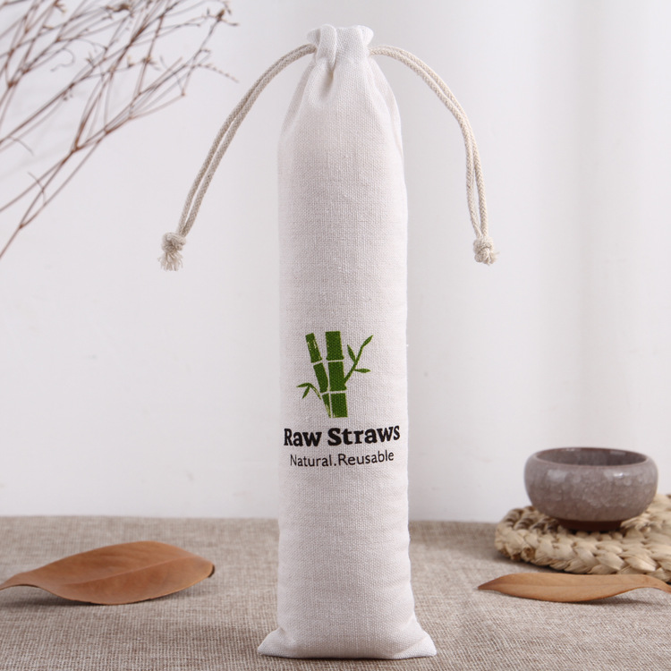 厂家专业定制棉帆布抽绳束口袋竹木刀叉勺吸管包装袋LOGO免费排版
