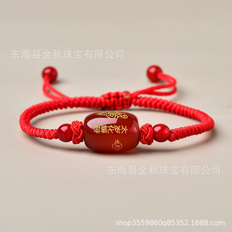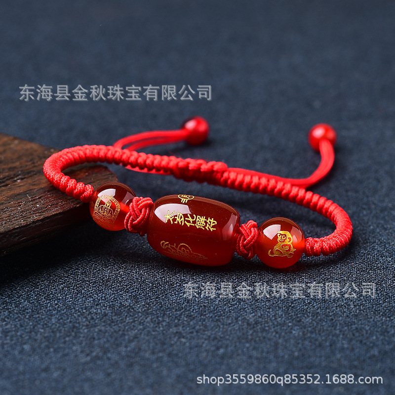 直播爆款 2022年新款红玛瑙生肖手链 本命年八大神红绳手串