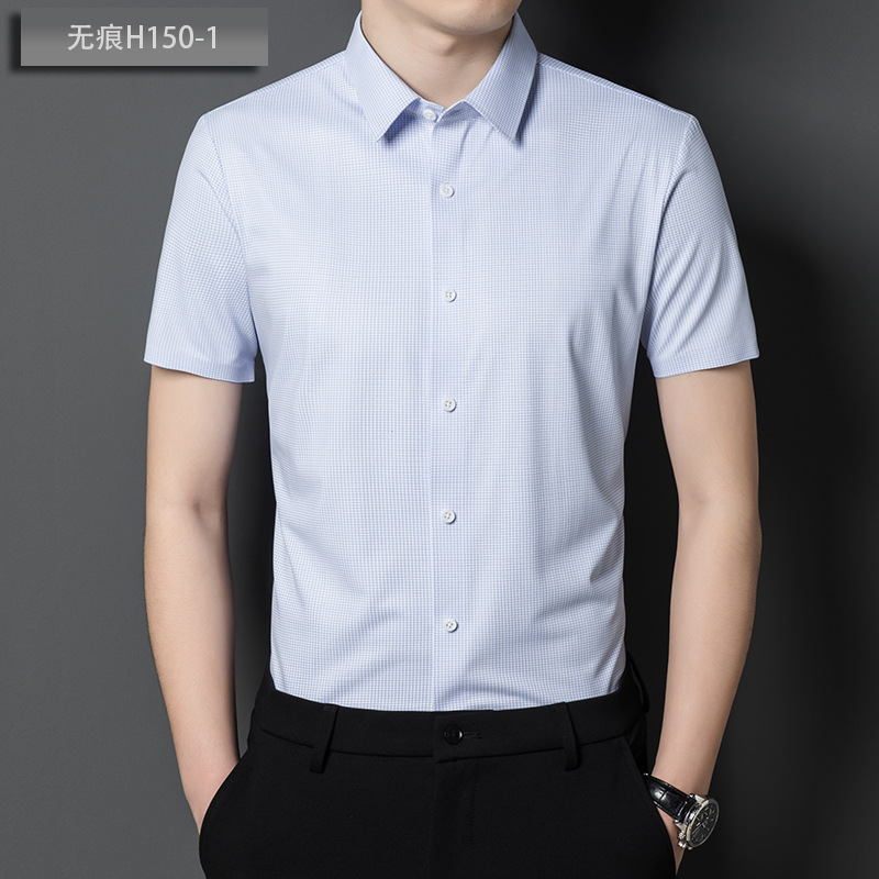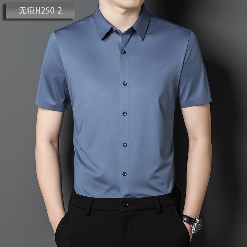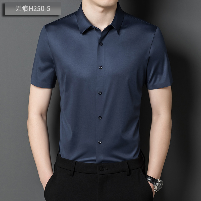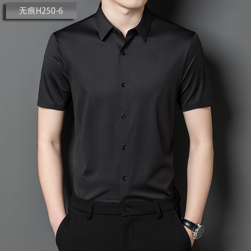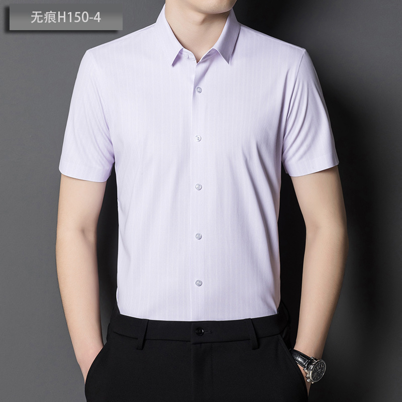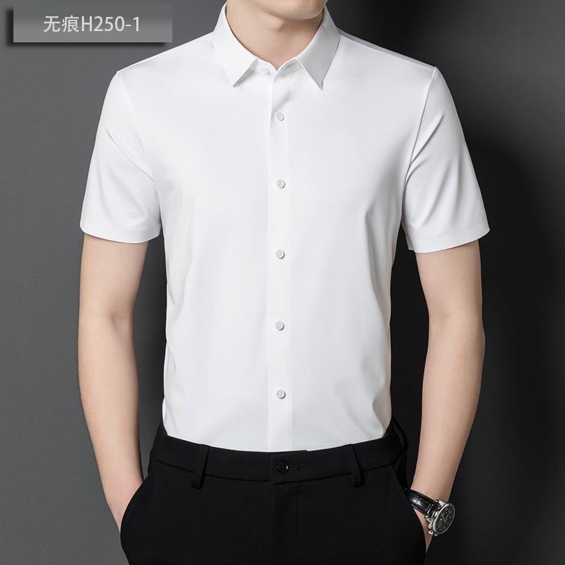 衬衫新款锦氨四面弹白衬衫激光切免烫休闲弹弹衬衣无痕短袖衬衫男