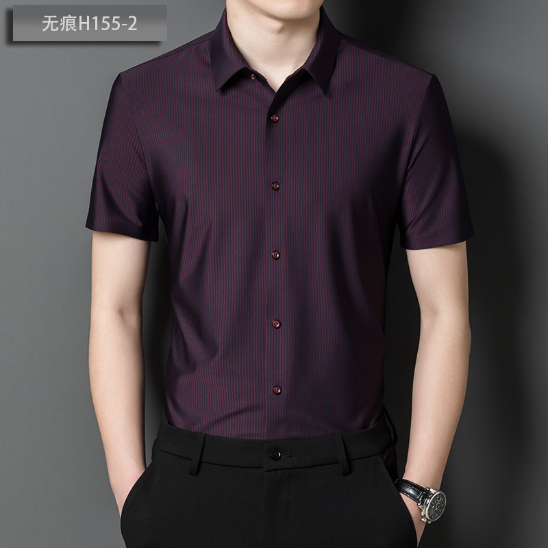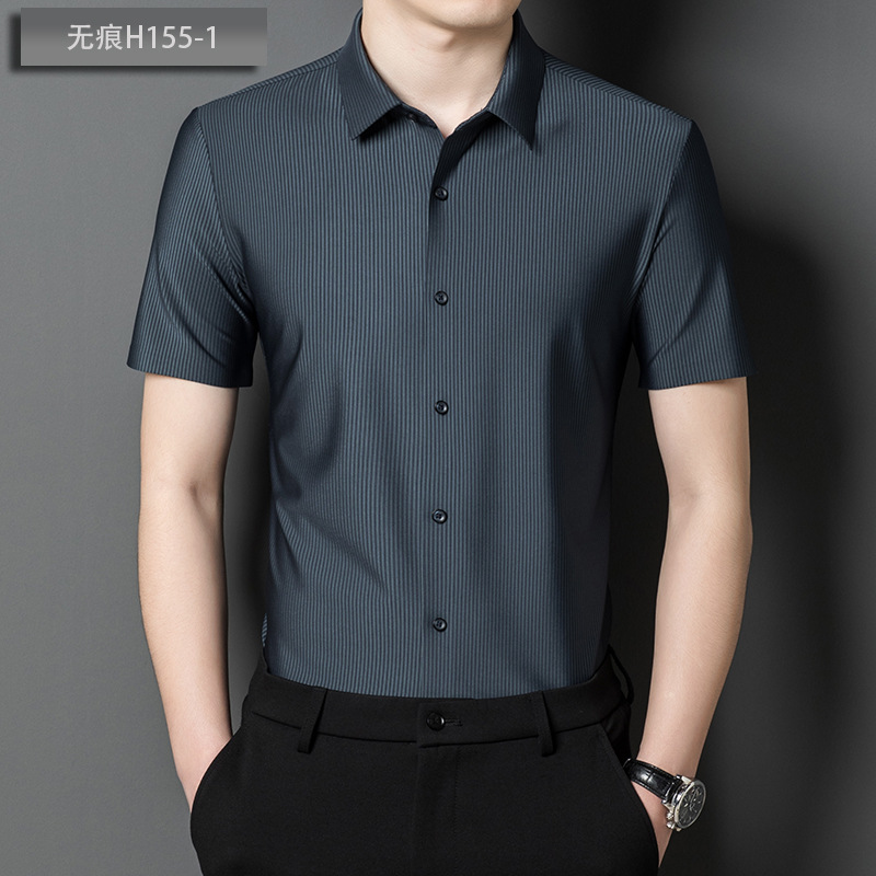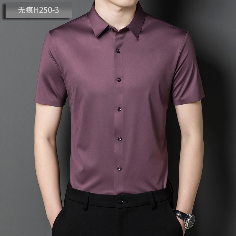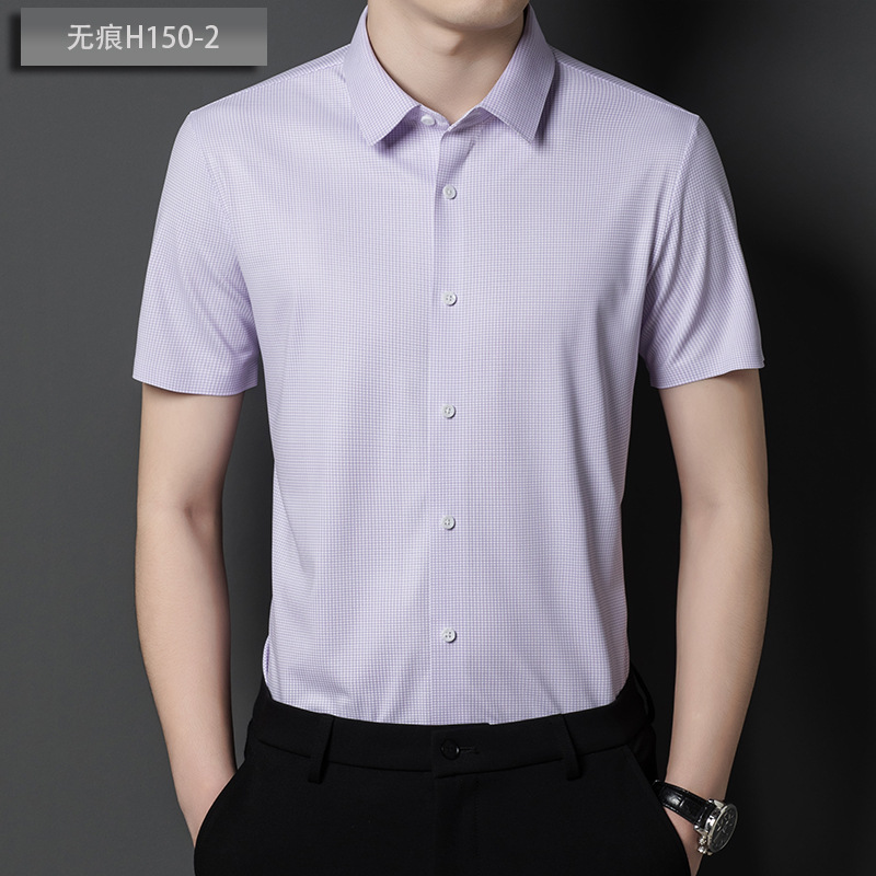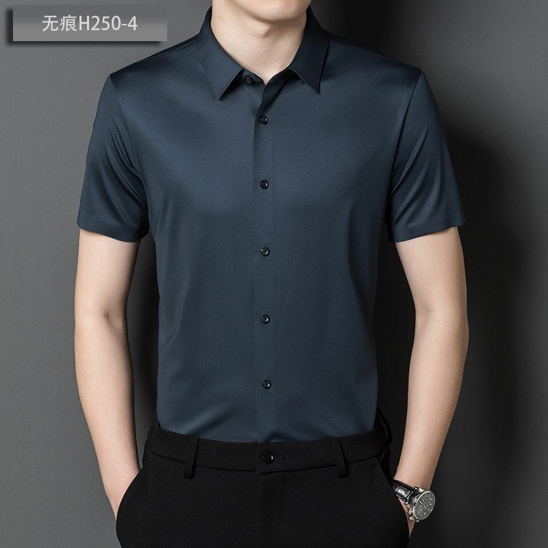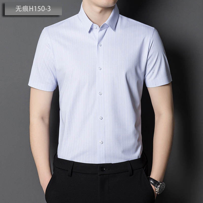 衬衫新款锦氨四面弹白衬衫激光切免烫休闲弹弹衬衣无痕短袖衬衫男