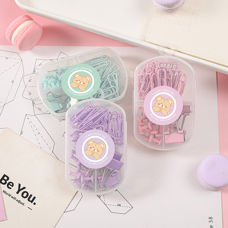 厂家直供马卡龙色回形针票夹订书机学生文具套装创意图钉装订组合