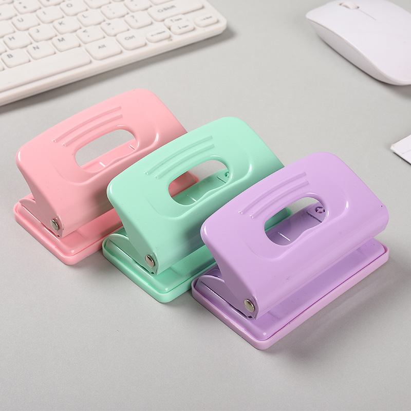 马卡龙色手动省力双孔活页本打孔器带量尺圆孔金属打孔机办公用品