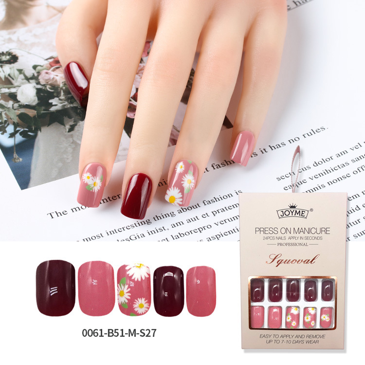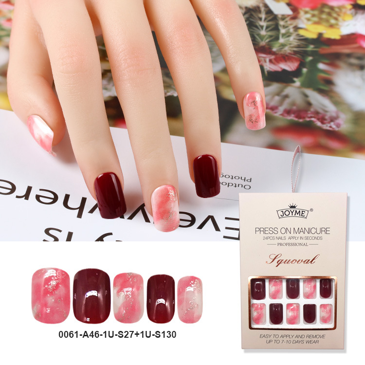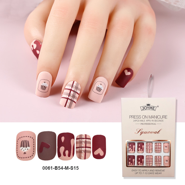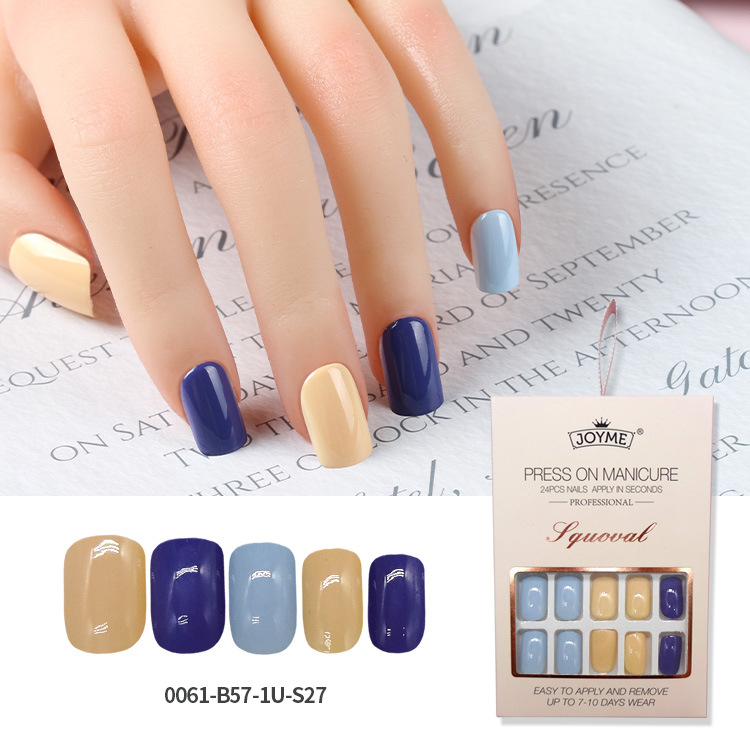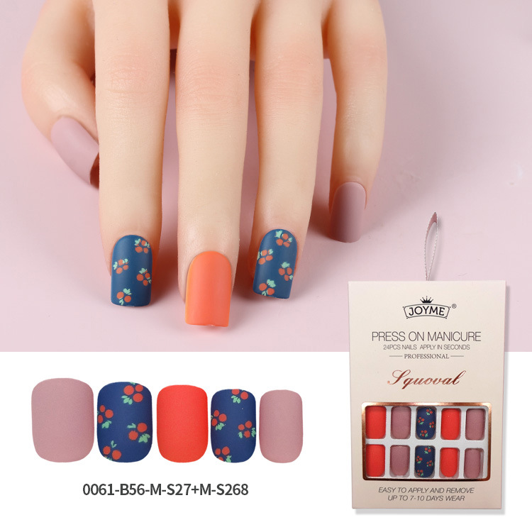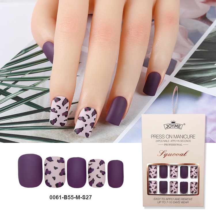 跨境热销短款方头软甲成品花色穿戴美甲哑光假指甲贴片配工具包