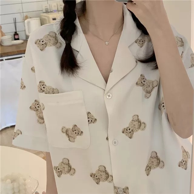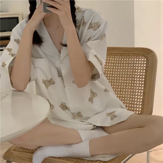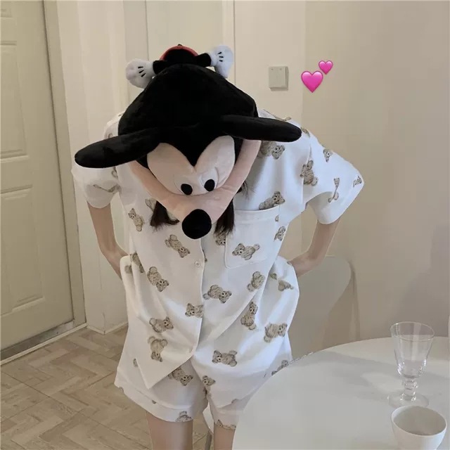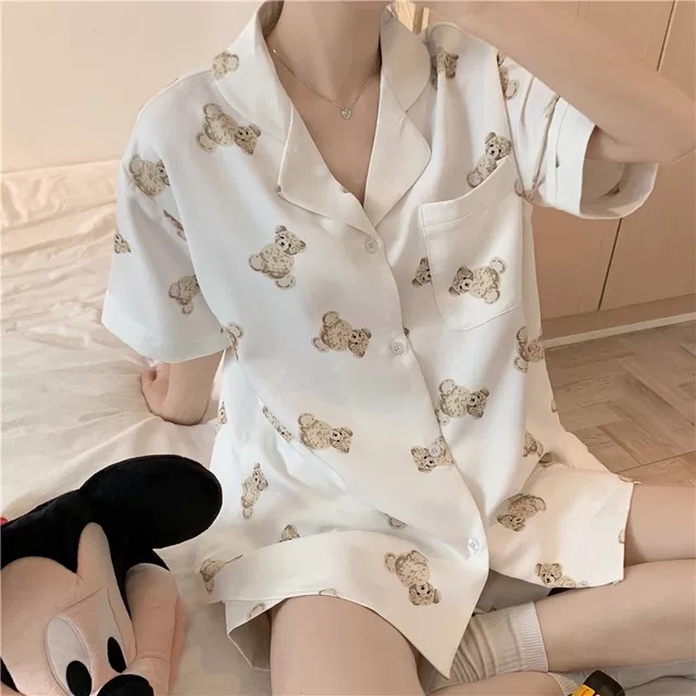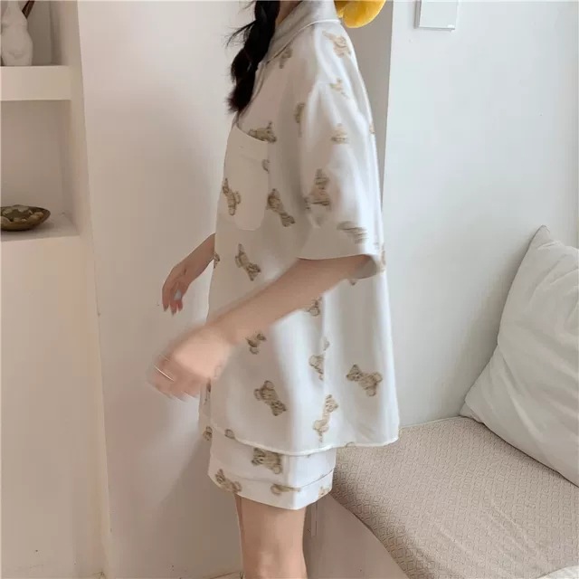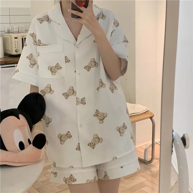 睡衣女夏季新款可爱小熊学生宿舍ins可外穿短袖家居服两件套装女