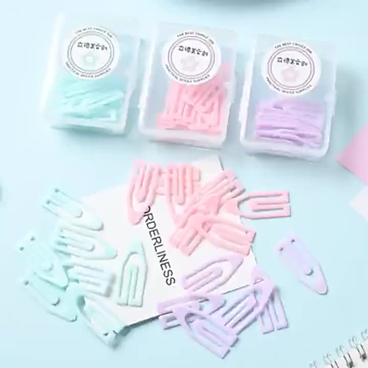 马卡龙色船型回形针小清新创意盒装大小号曲别针金属装订办公用品
