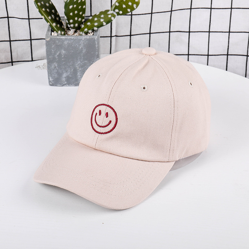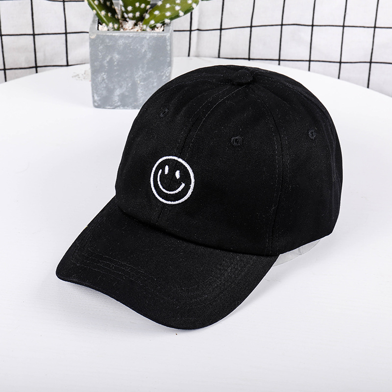 秋冬新款棒球帽男女士韩版软顶刺绣笑脸图案遮阳帽街头弯檐鸭舌帽
