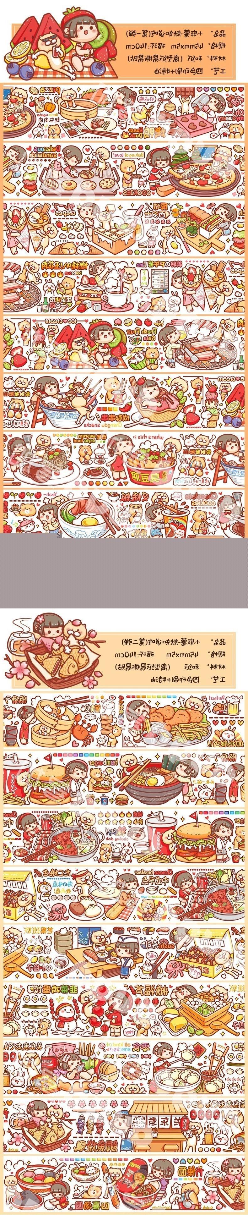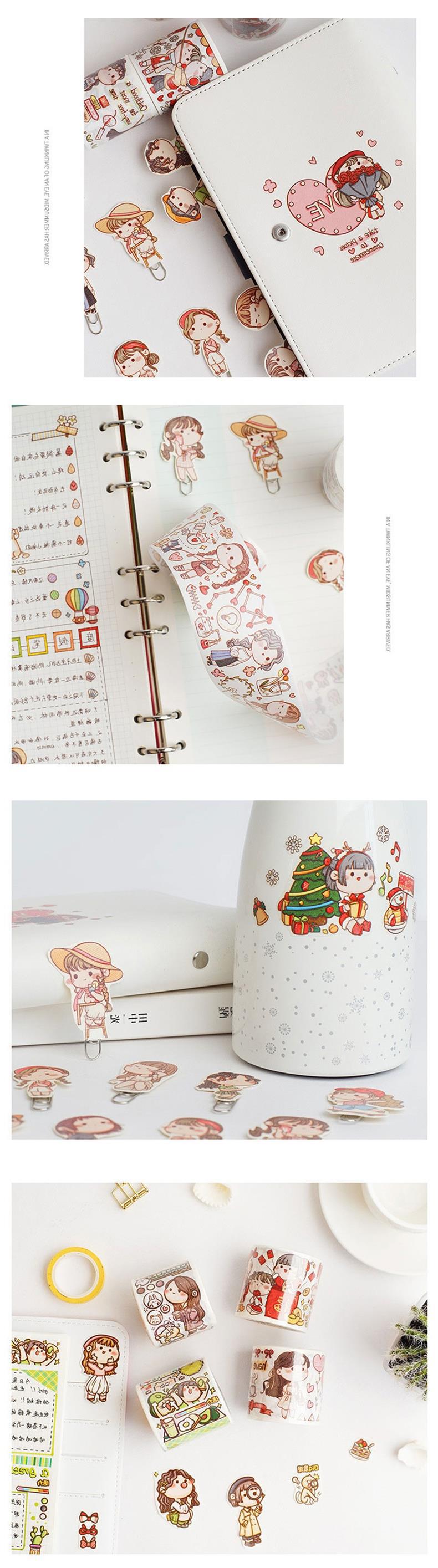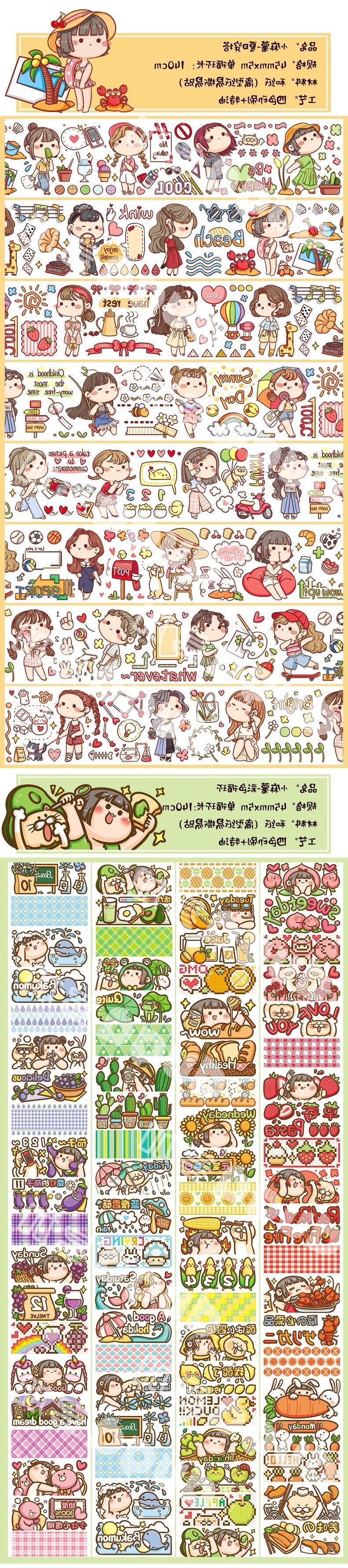特油小麻薯和纸胶带整卷肉球风可爱卡通人物女孩手帐diy贴纸装饰
