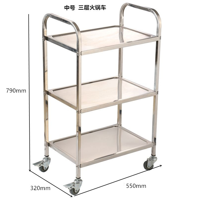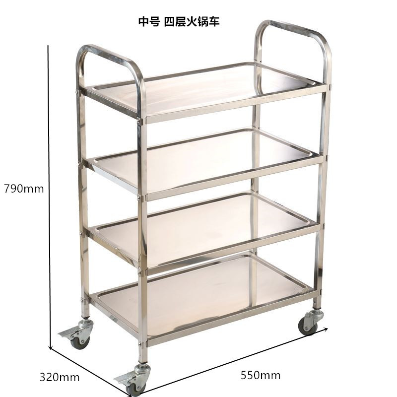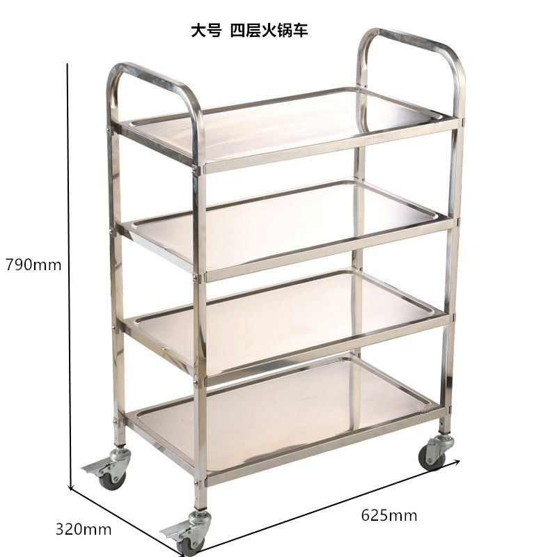 加厚不锈钢餐车三层四层移动手推车火锅车餐厅厨房置物架收送餐车