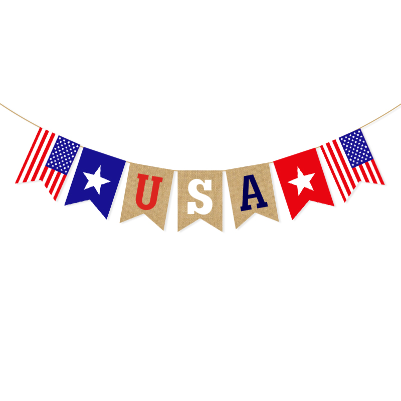 美旗五角星USA麻布 国庆装饰鱼尾旗彩色五角星拉花