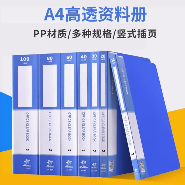 厂家直供防水A4试卷收纳册办公蓝色文件夹档案透明插页多层资料册