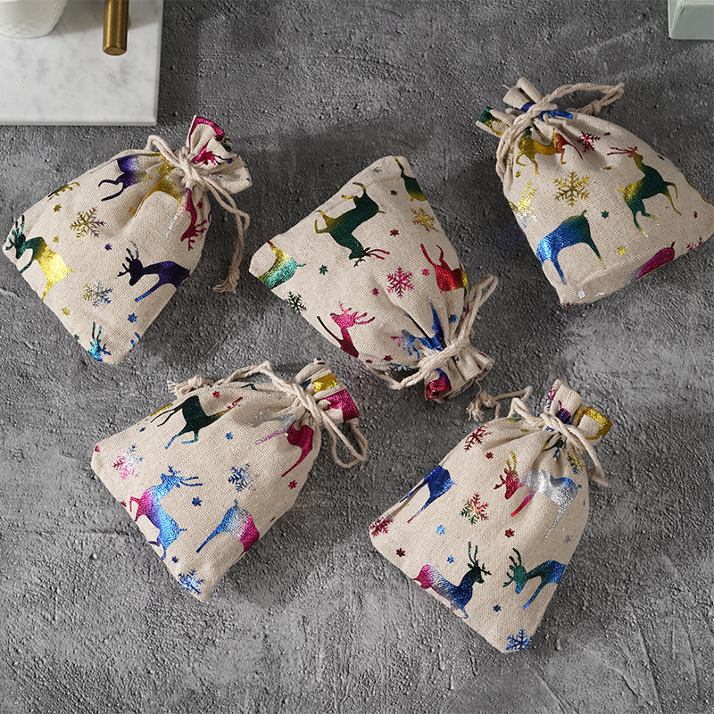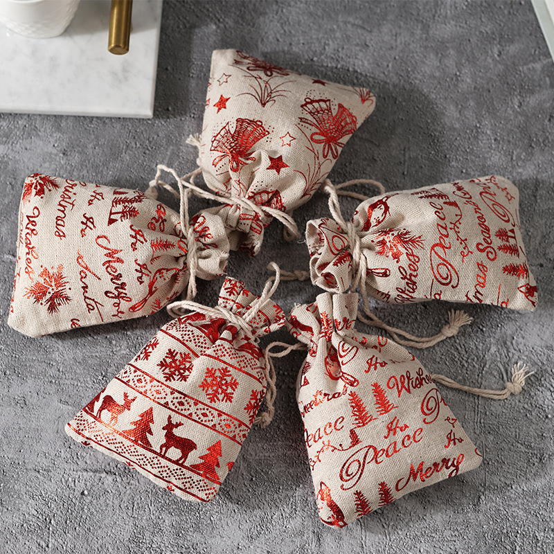 厂家专业定制麻布袋圣诞礼品包装袋抽绳束口袋可印刷LOGO