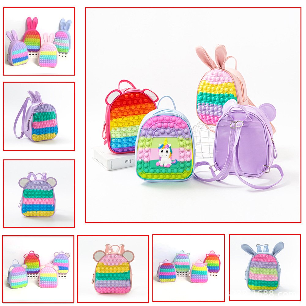 跨境 独角兽挎包卡通硅胶零钱包按压手泡泡 店家推荐解压益智玩具